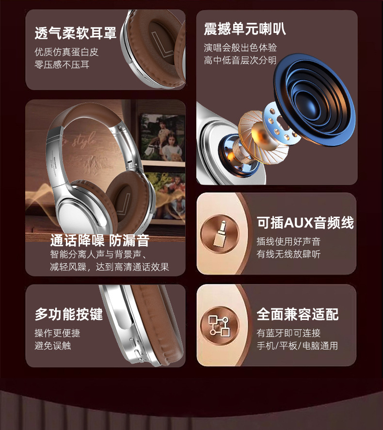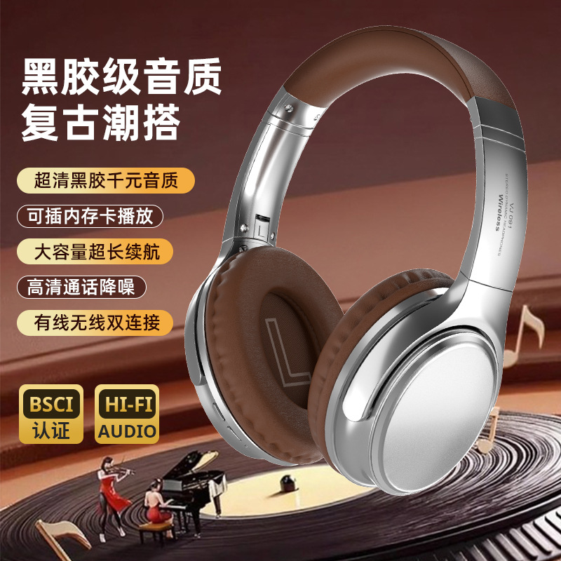 VJ901美式复古风无线蓝牙6.0耳机头戴式插卡插线运动穿搭