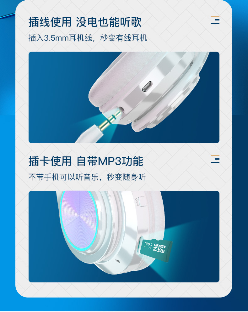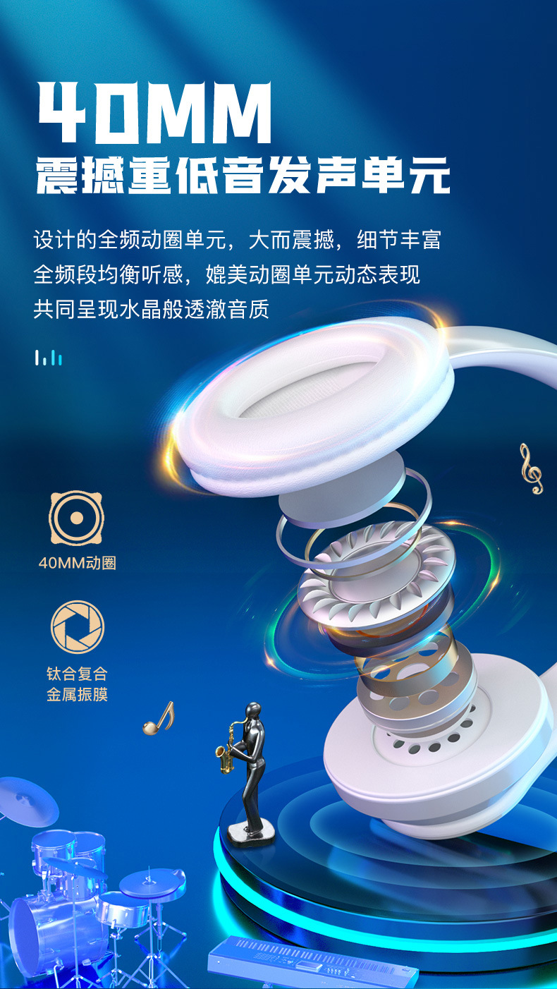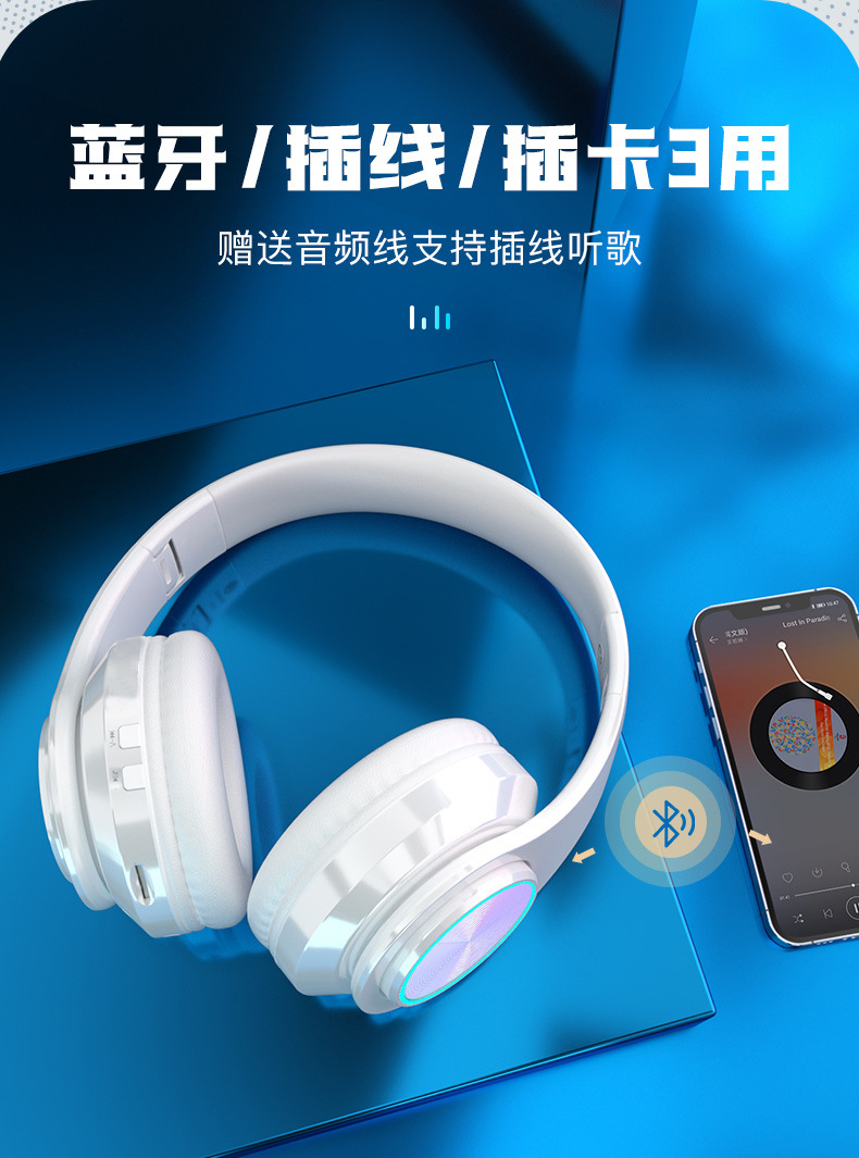 爆款B39发光无线蓝牙耳机头戴式折叠立体声蓝牙耳机
