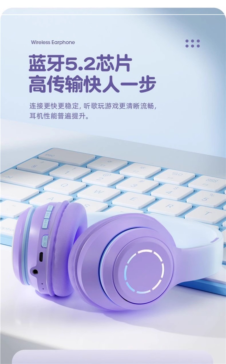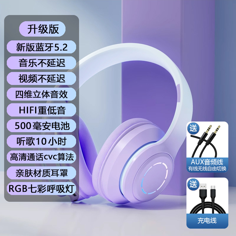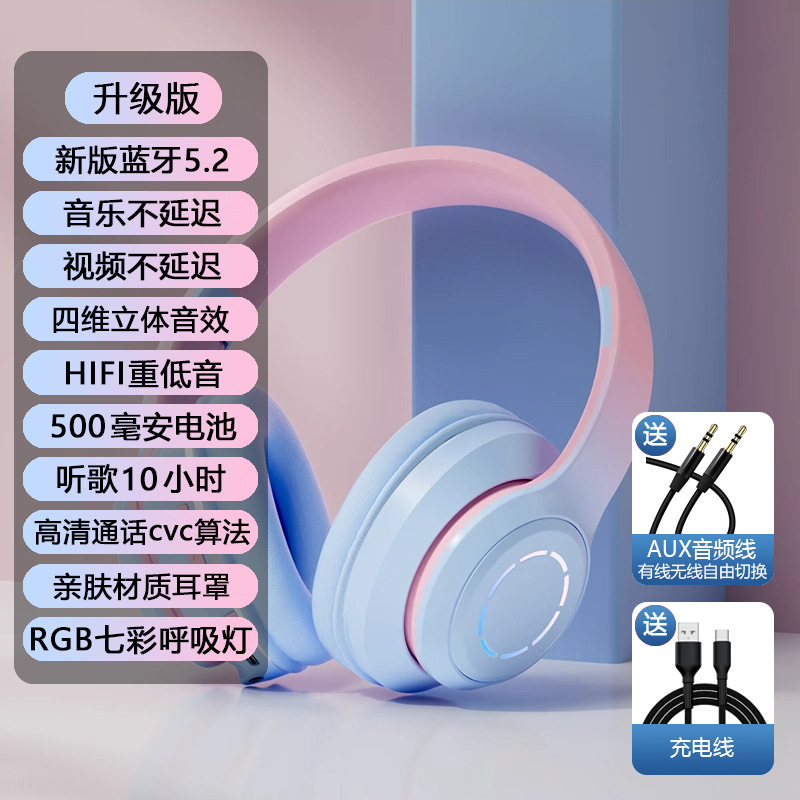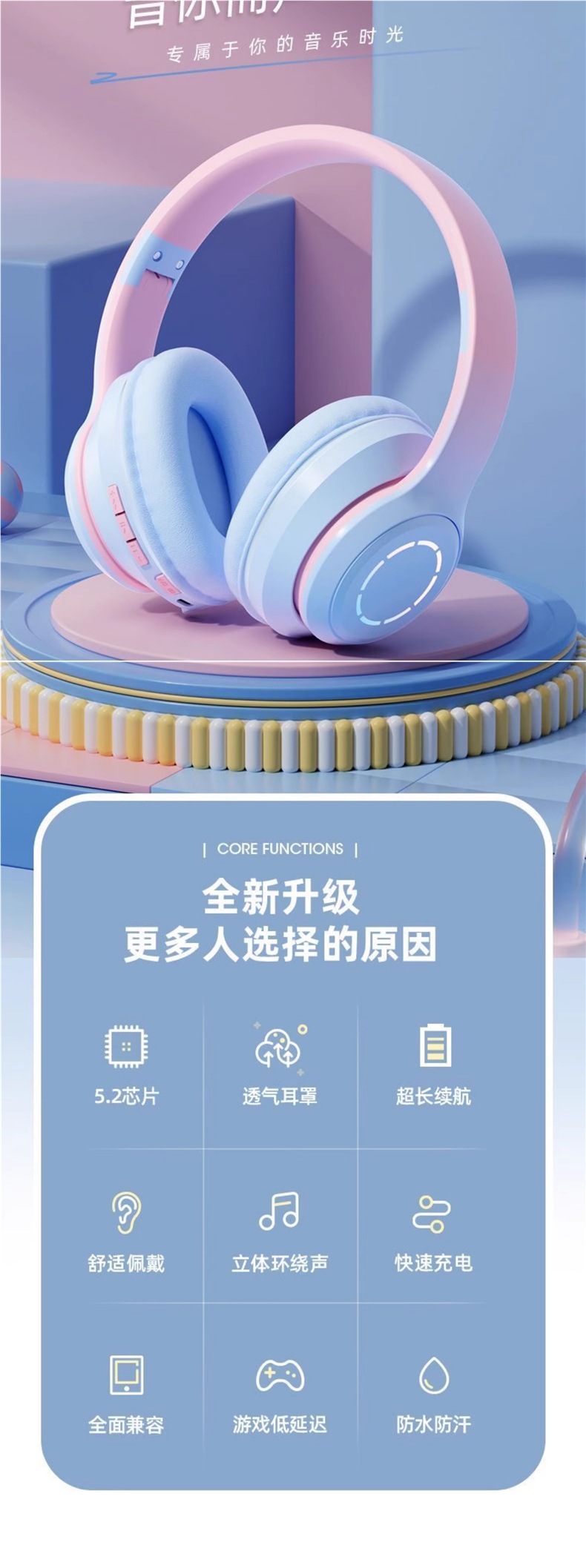 爆款发光蓝牙耳机头戴式重低音手机无线运动游戏礼品耳麦