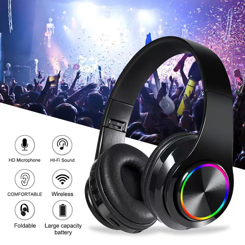 头戴式蓝牙耳机B39蓝牙耳机UV发光立体音运动耳机炫彩