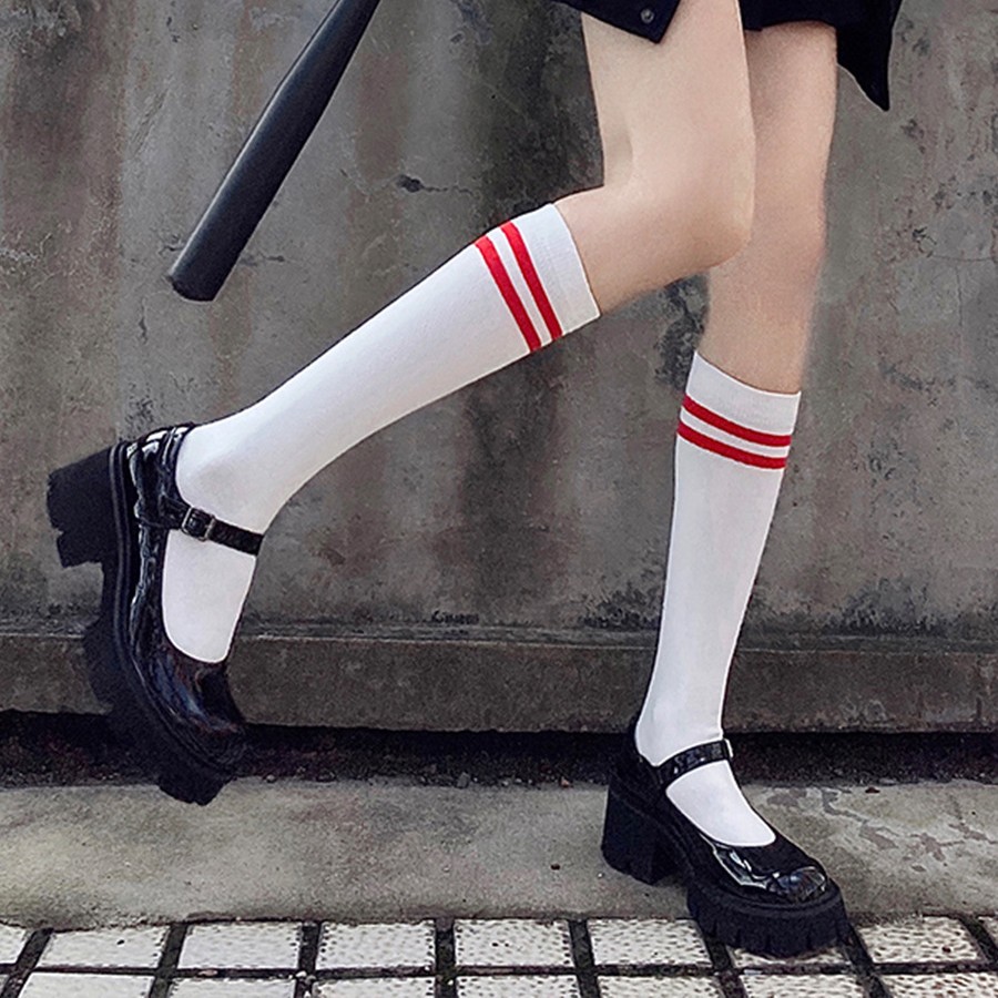 黑色长筒袜二杠小腿袜日系学院风jk袜子女春秋中筒袜高筒过膝长袜