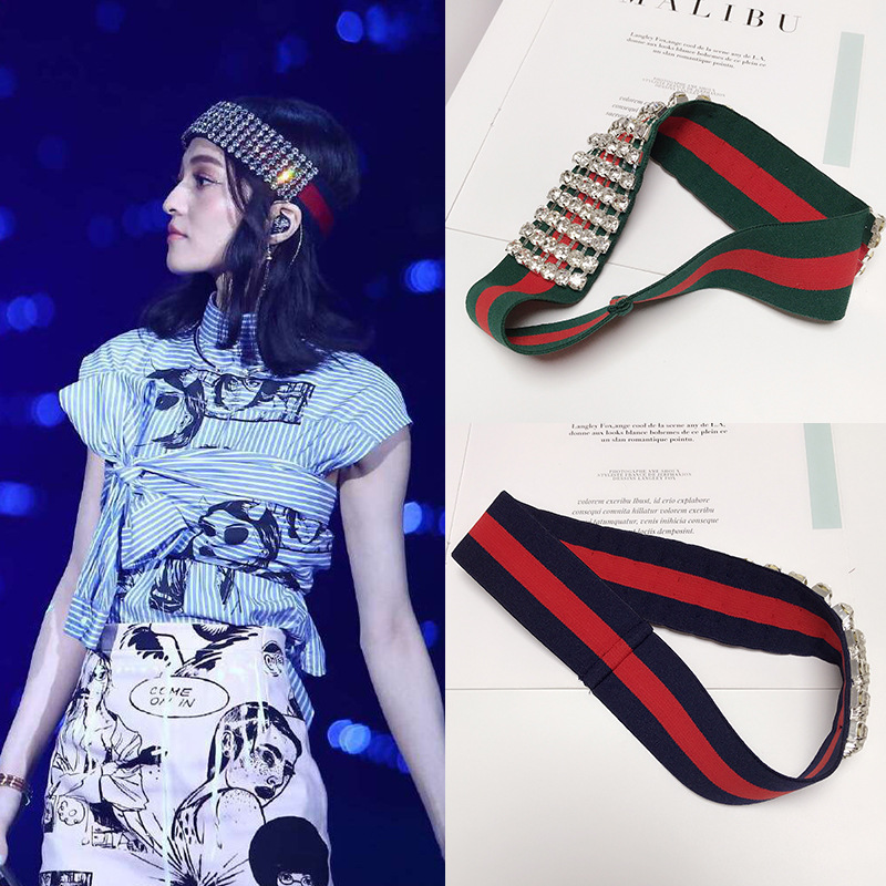 镶钻发带网红ins时尚满钻条纹白钻头带发带