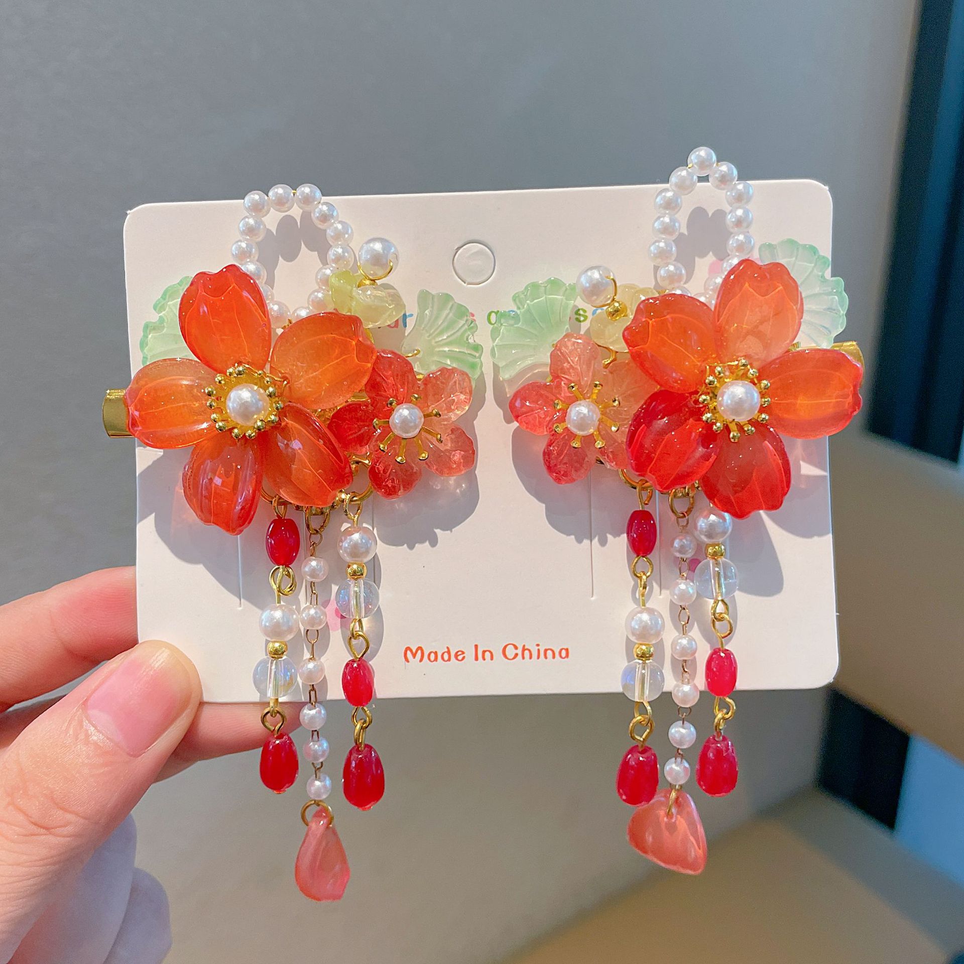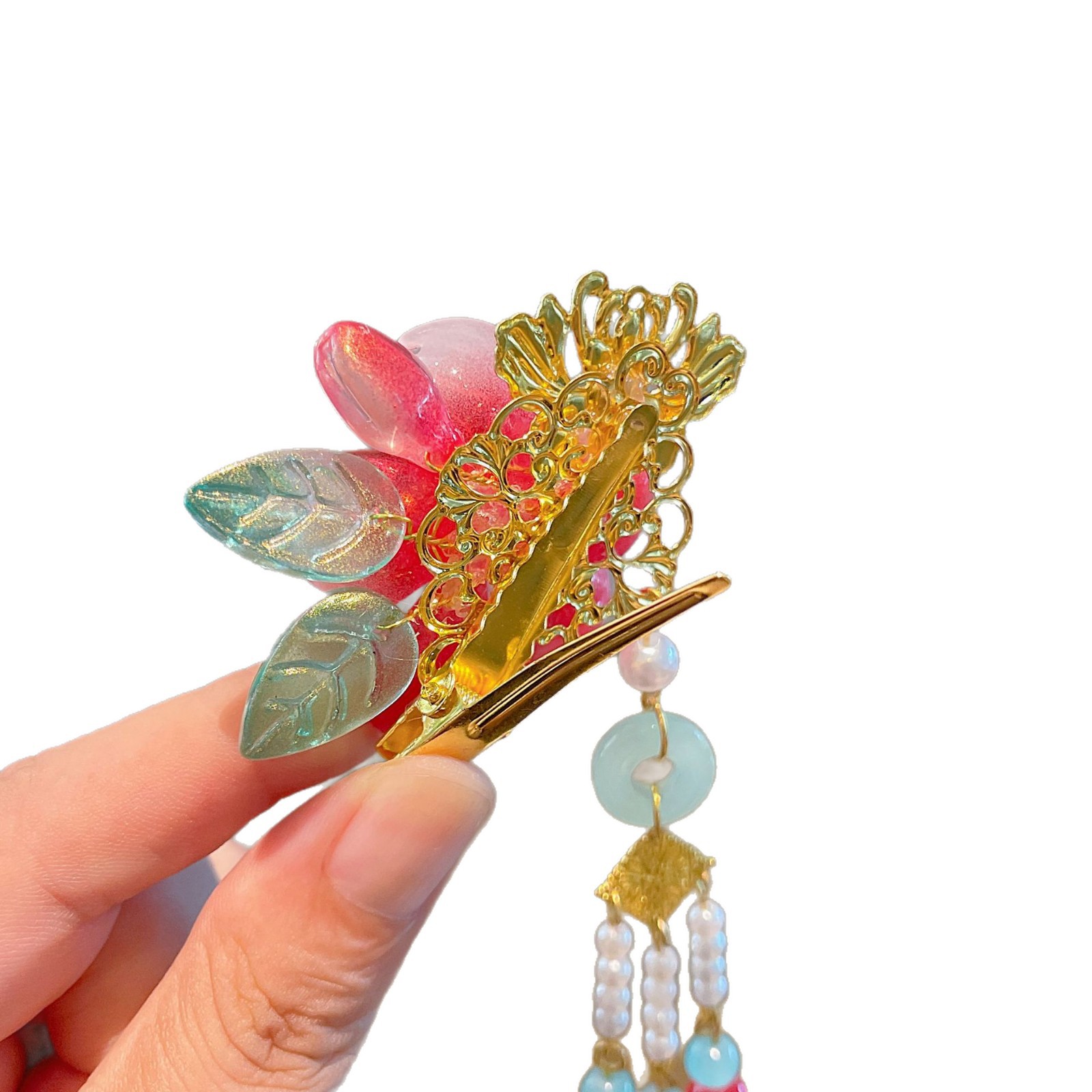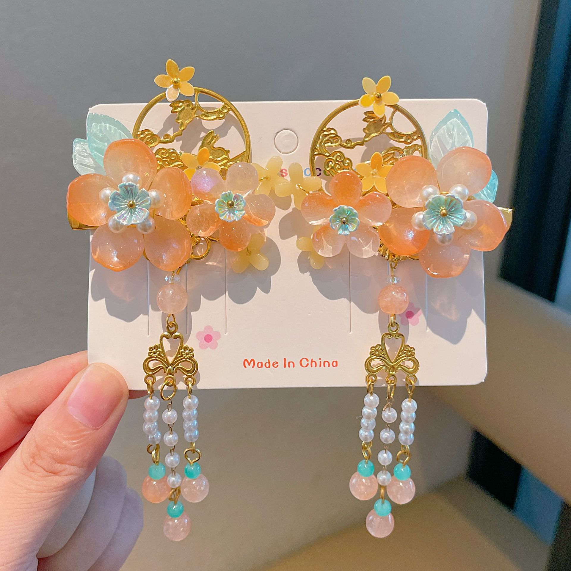 汉服头饰女儿童古风花朵流苏发夹女孩古装中国风发卡公主流苏对夹