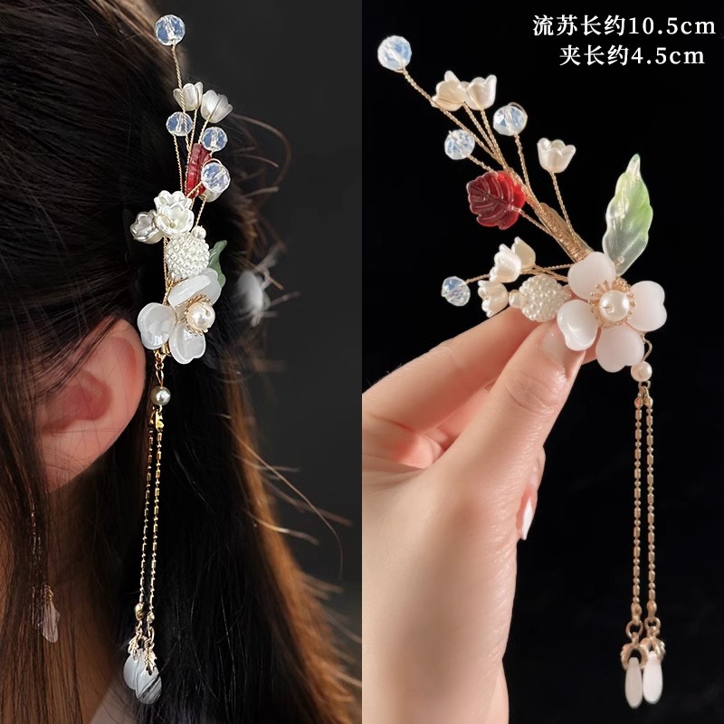 古风发夹女中国风玲兰花流苏汉服夹头饰刘海侧边夹新中式花朵发卡