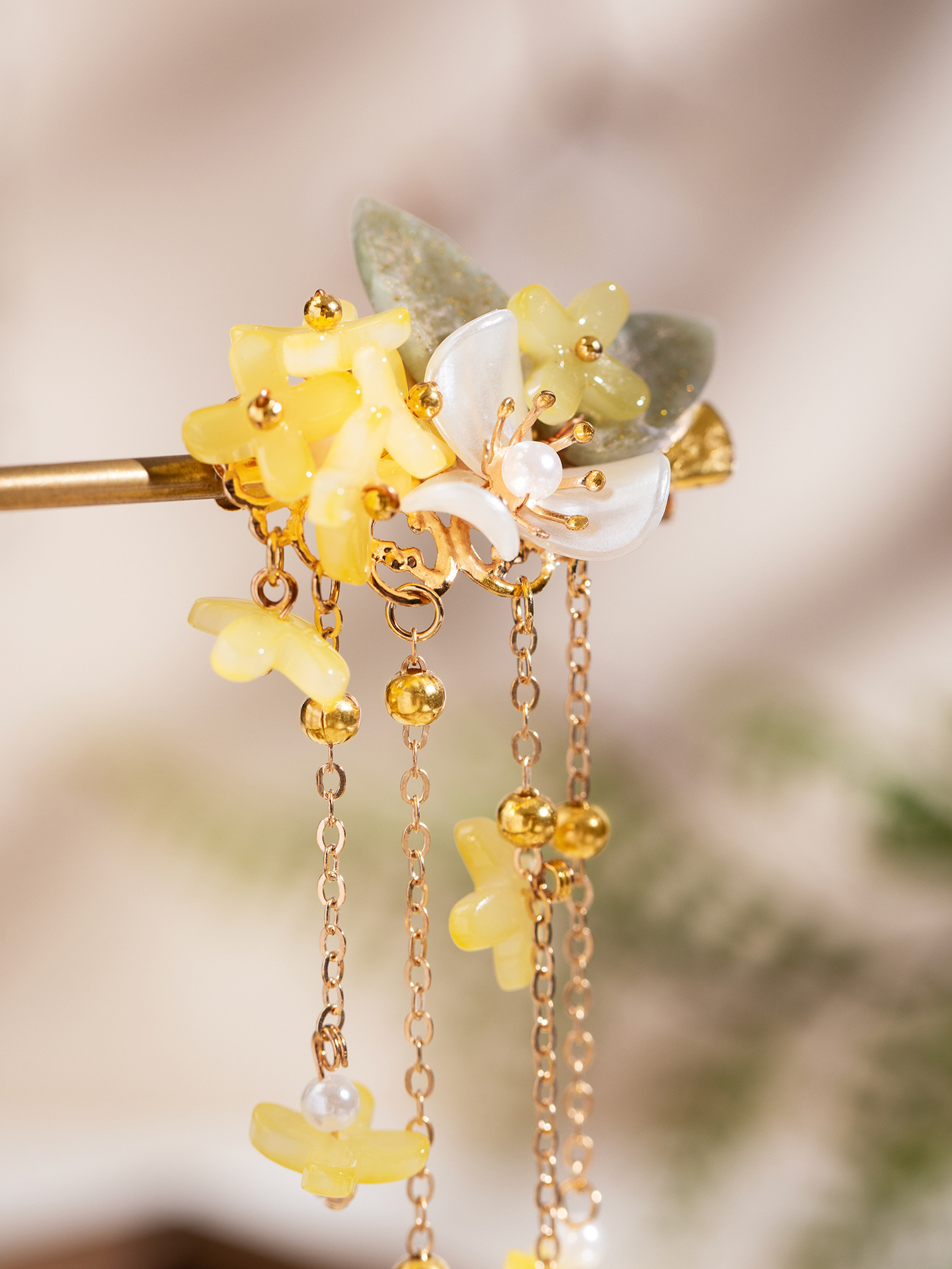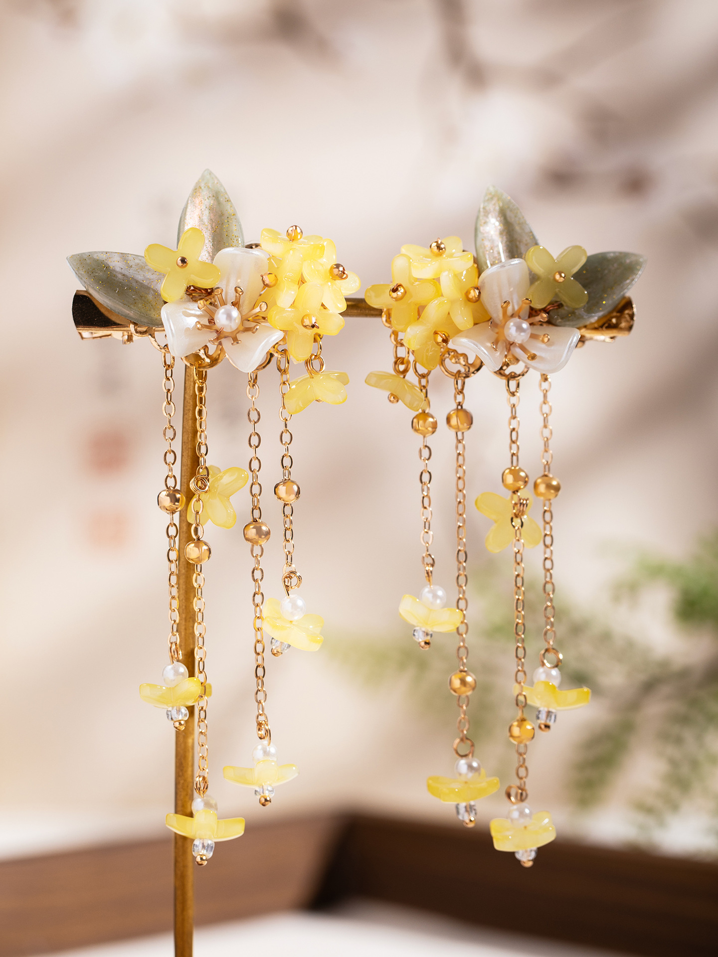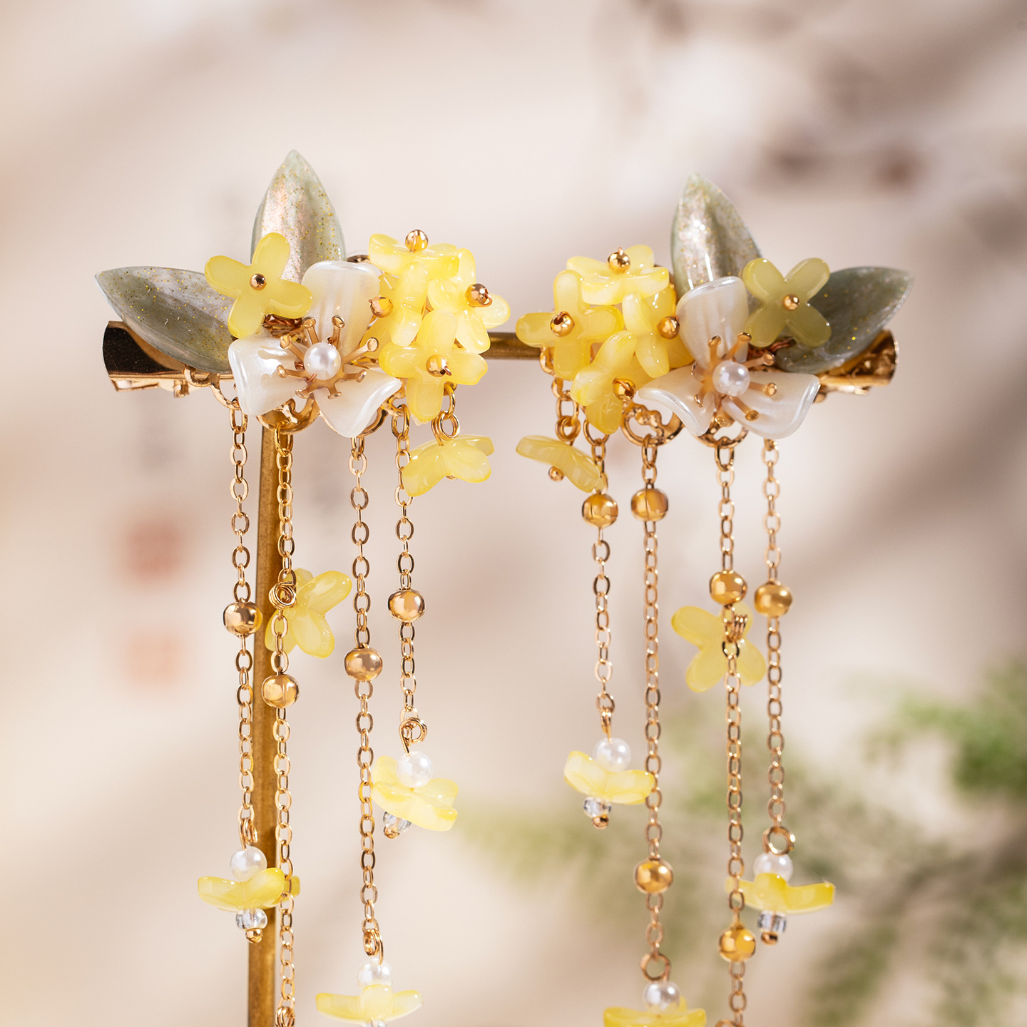 桂花发饰可爱儿童发夹古风汉服头饰超仙流苏边夹秋冬配饰新中式