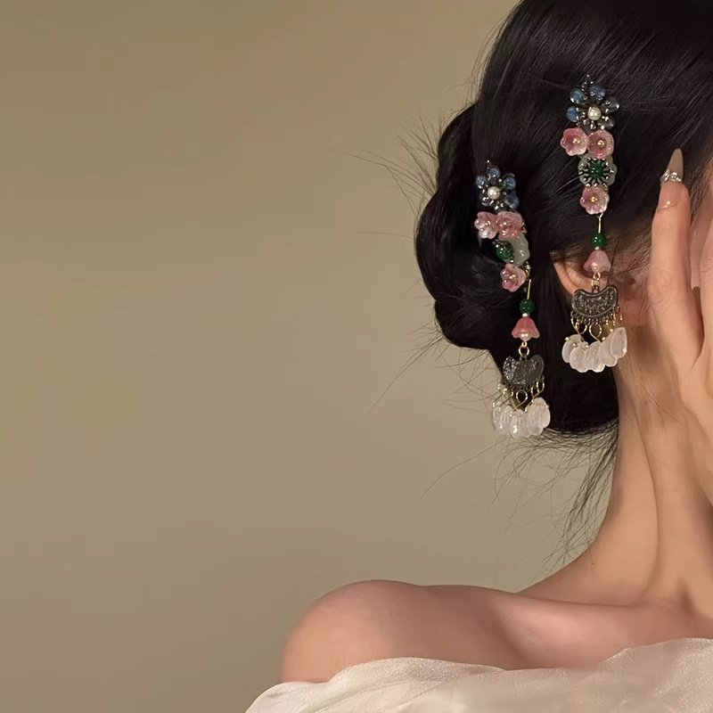 新中式花朵长流苏发夹侧边刘海夹女复古汉服配饰发饰