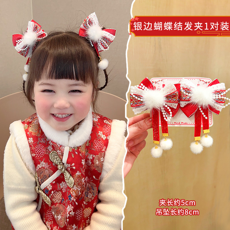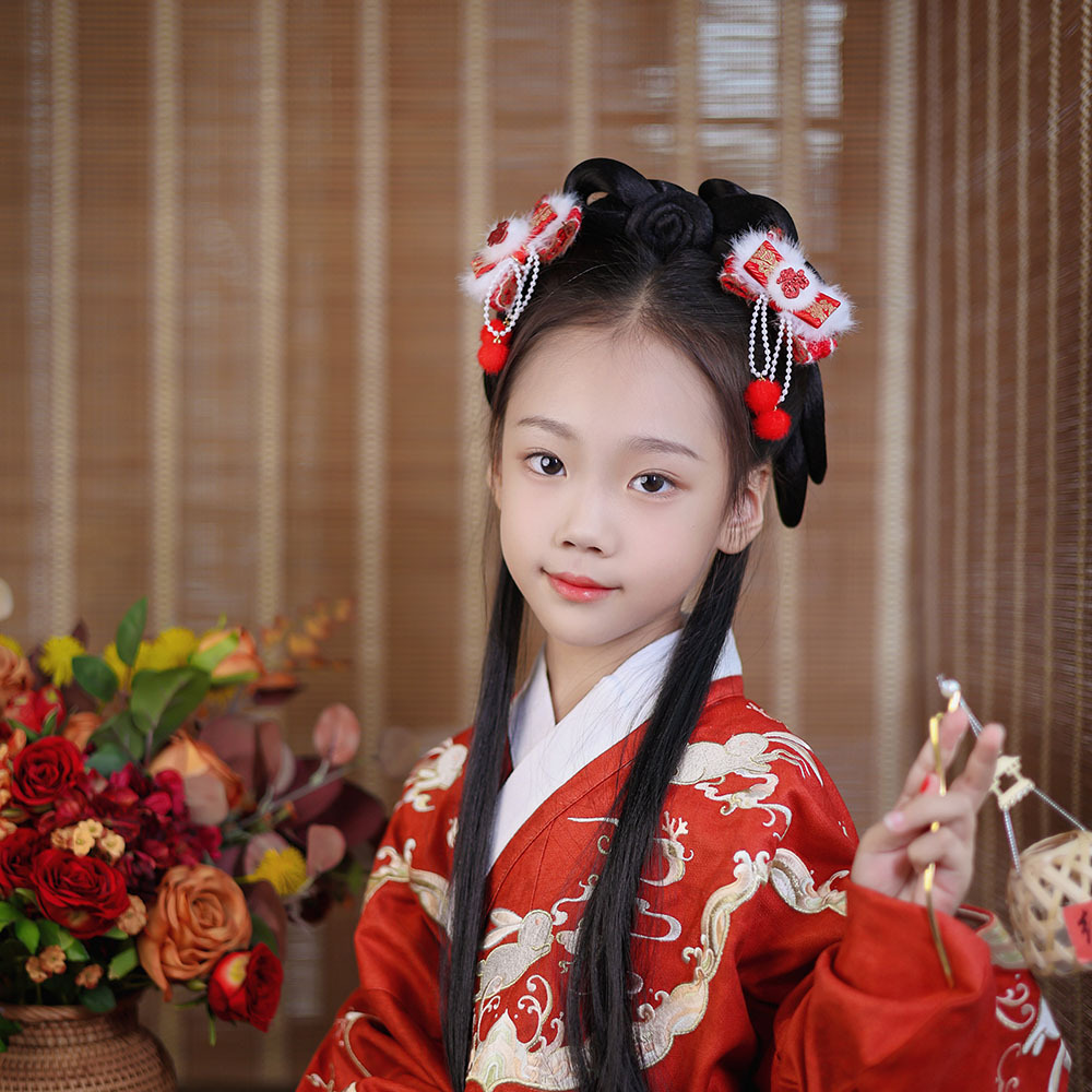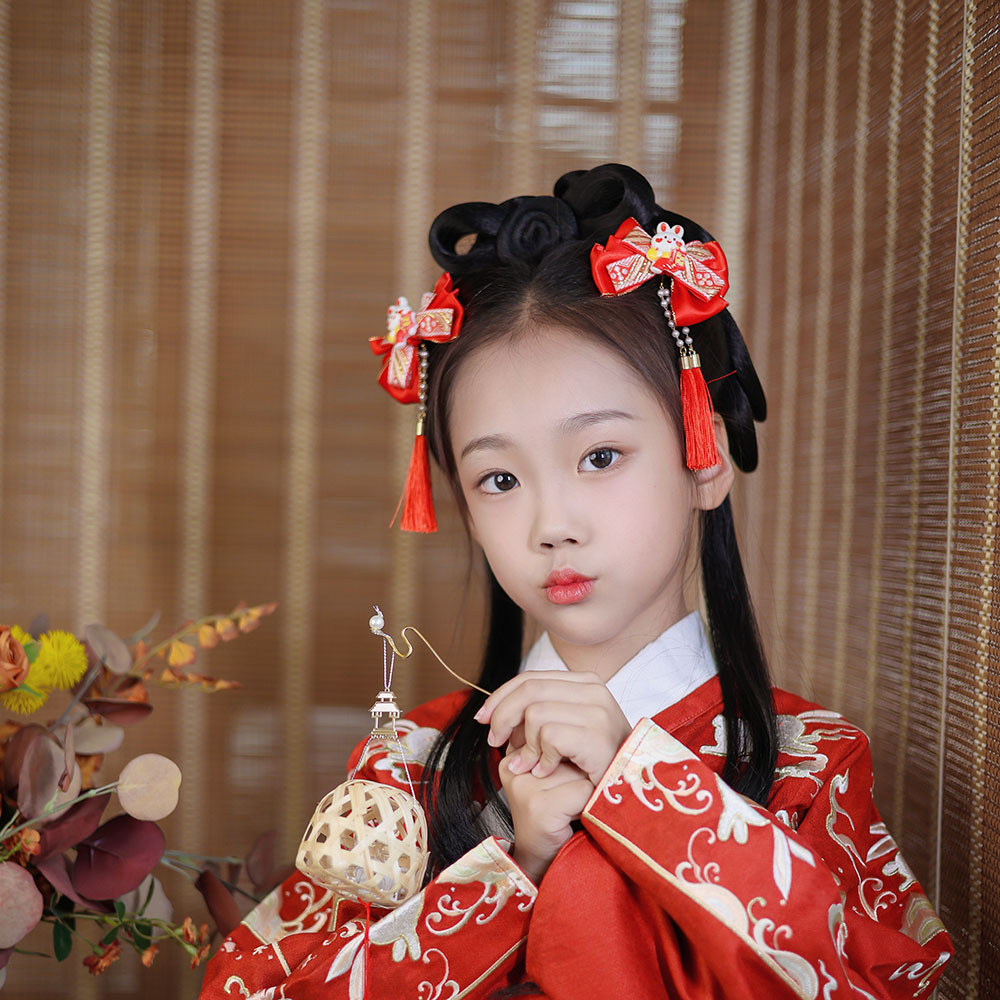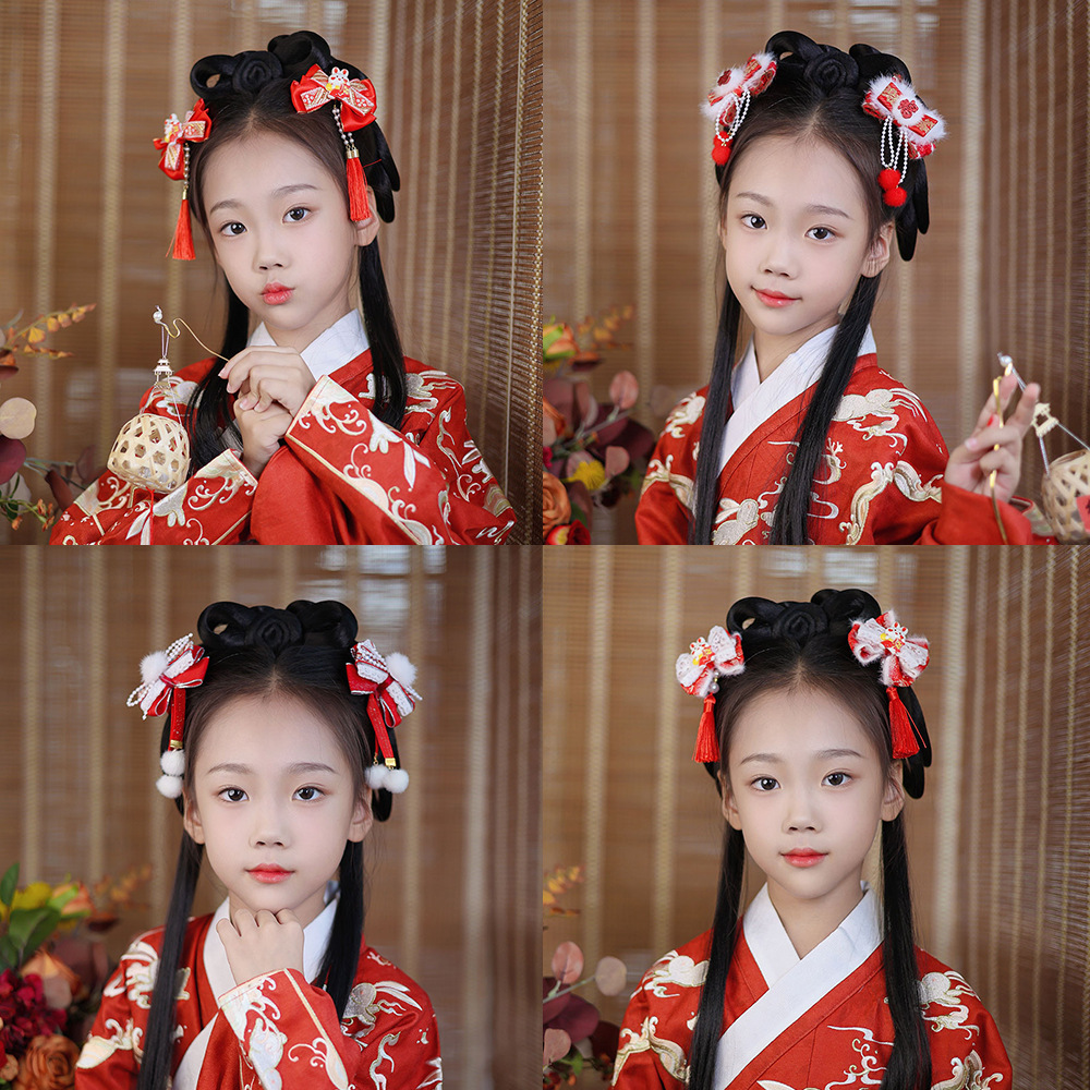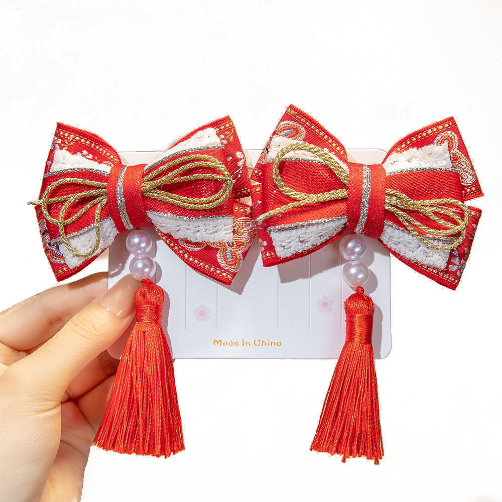 新年古风流苏发饰儿童汉服发夹宝宝可爱拜年对夹小女孩中国风发饰