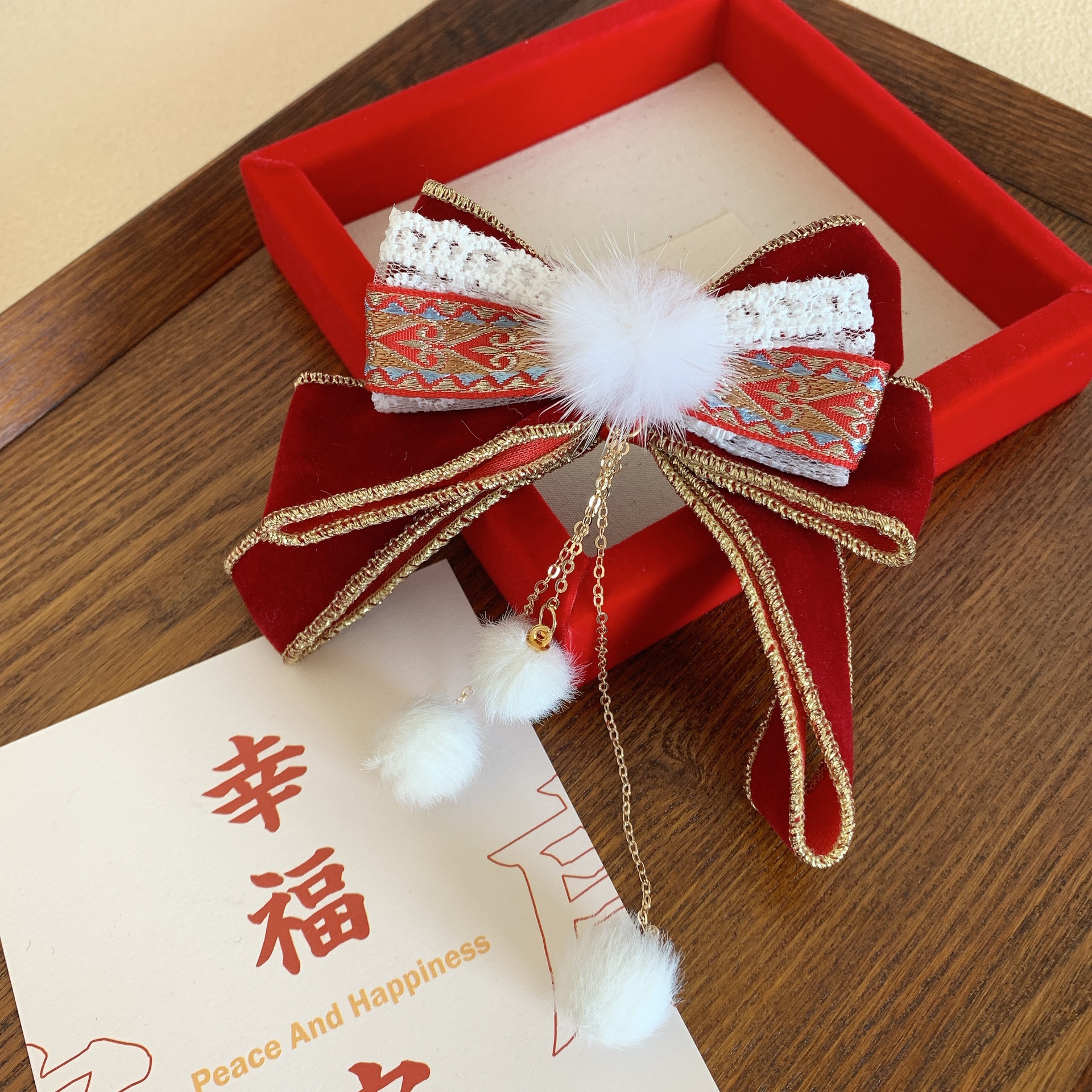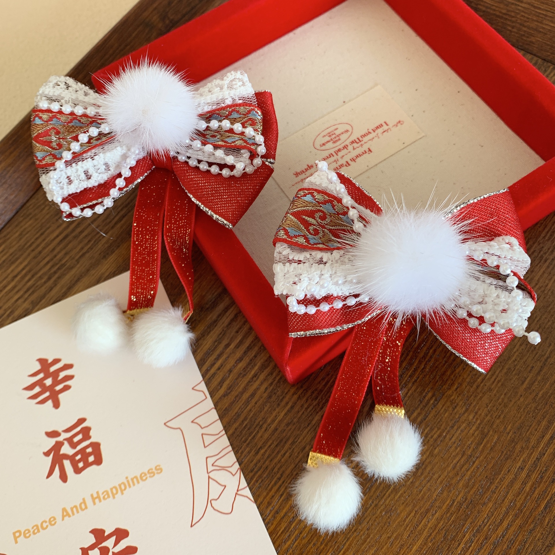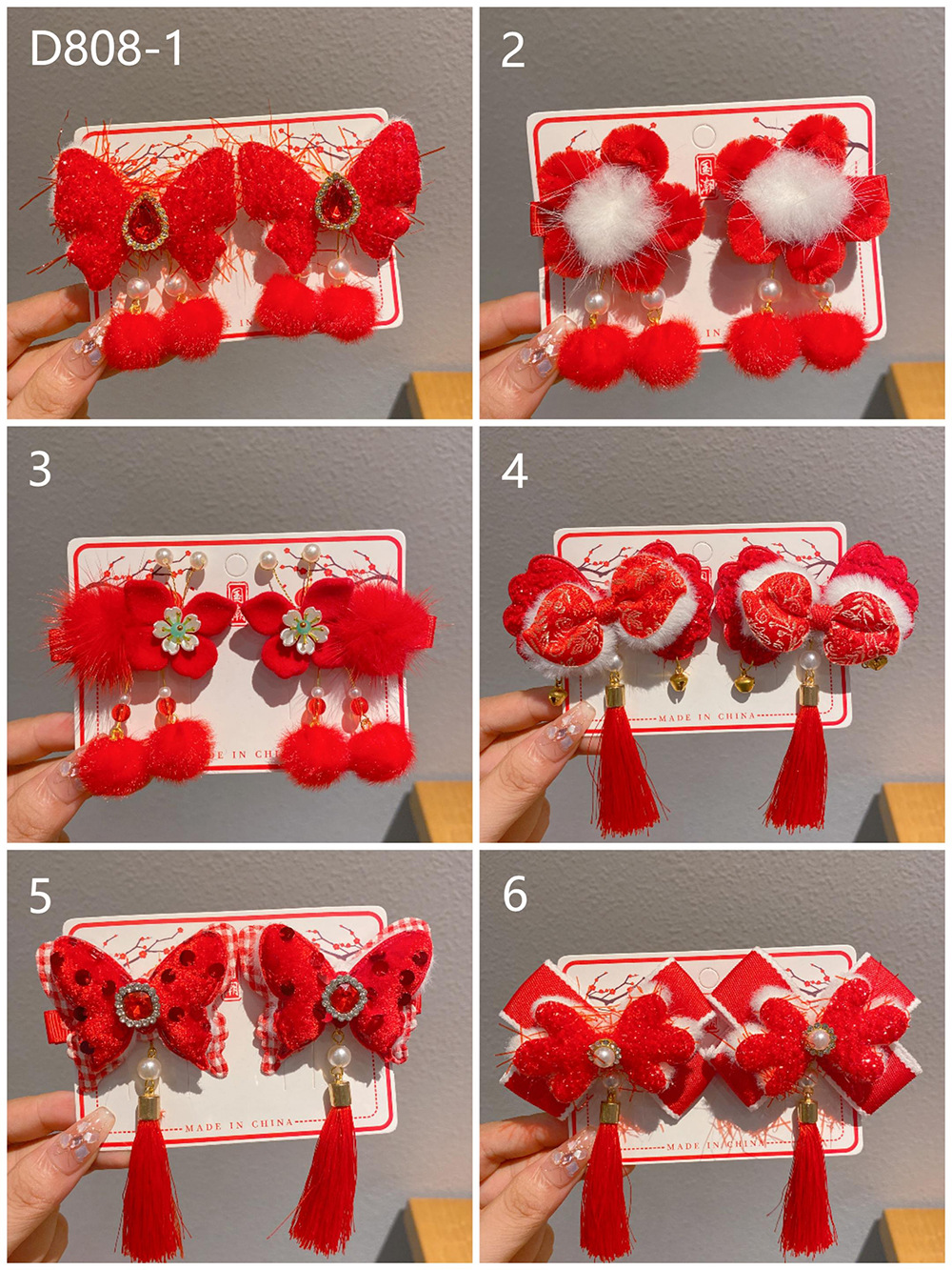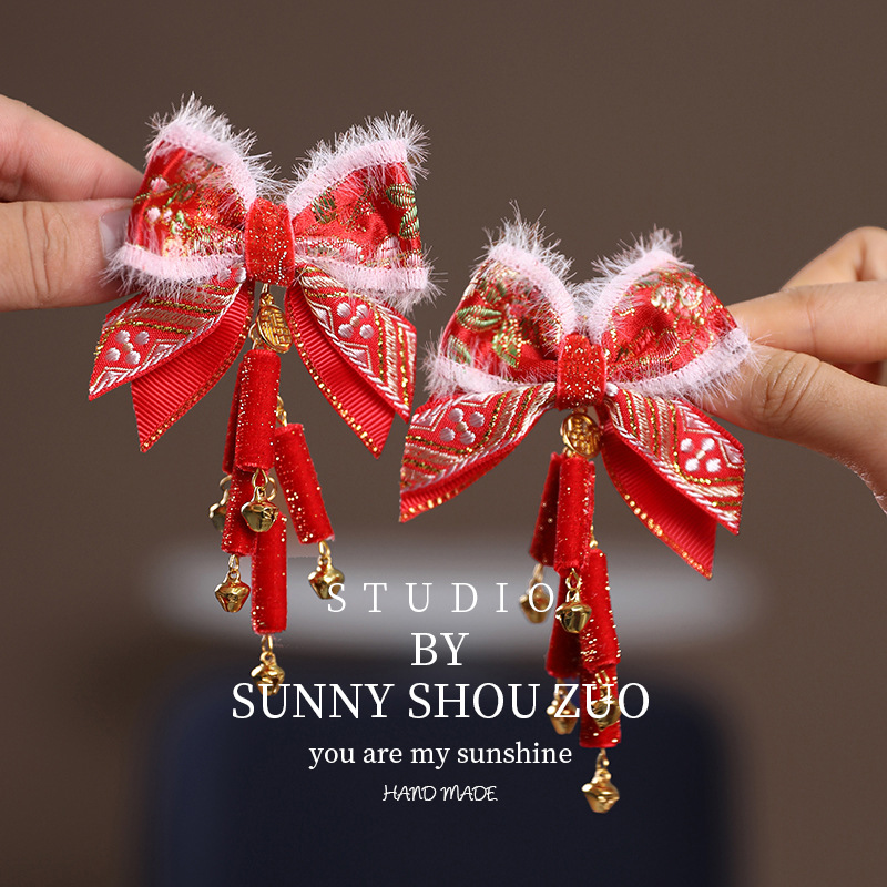 新年古风流苏发饰儿童汉服发夹宝宝可爱拜年对夹小女孩中国风发饰