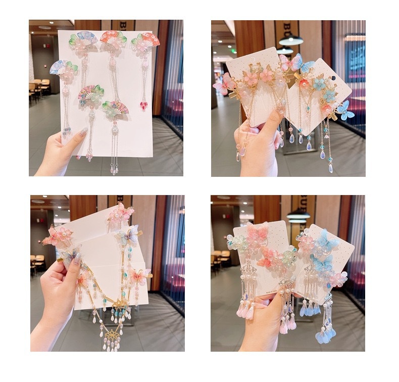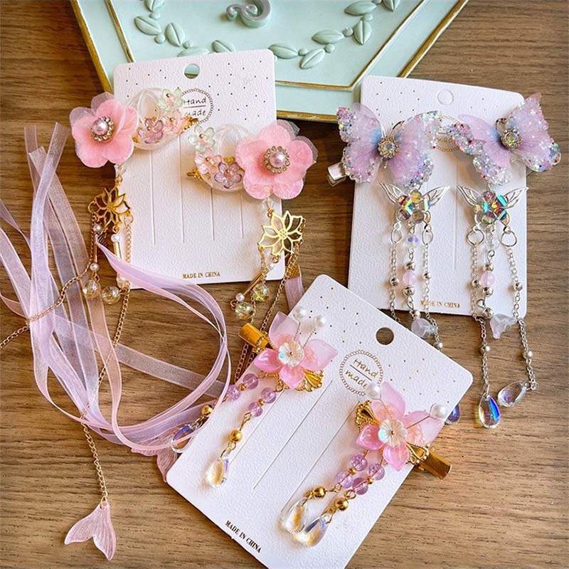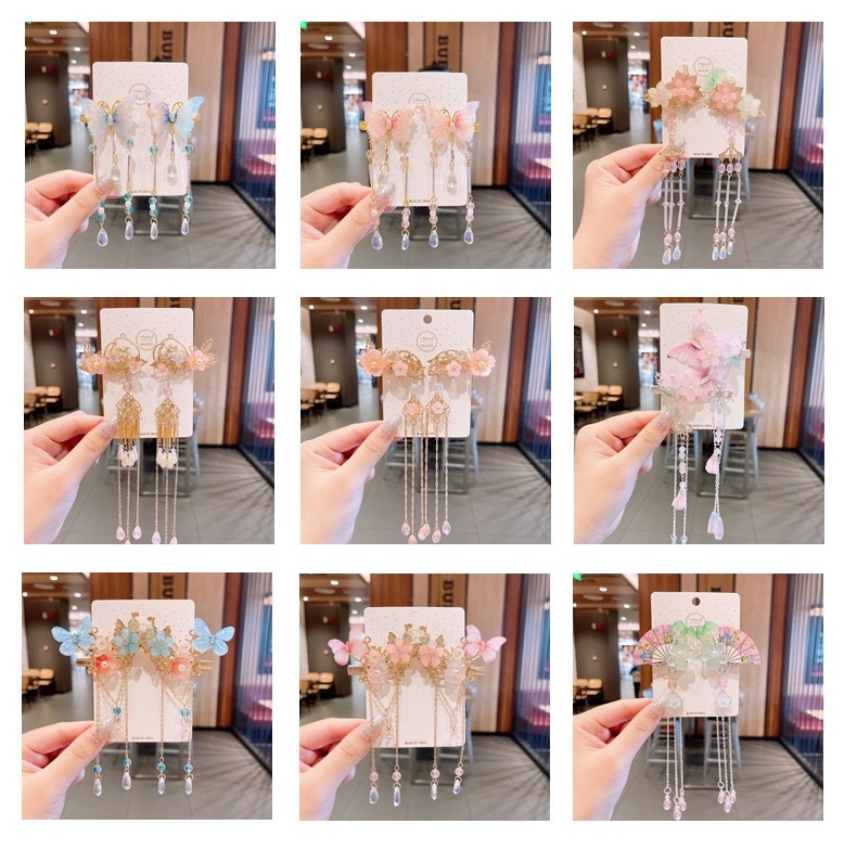 中国风儿童头饰套装女童汉服发夹古风发卡步摇超仙流苏蝴蝶发饰