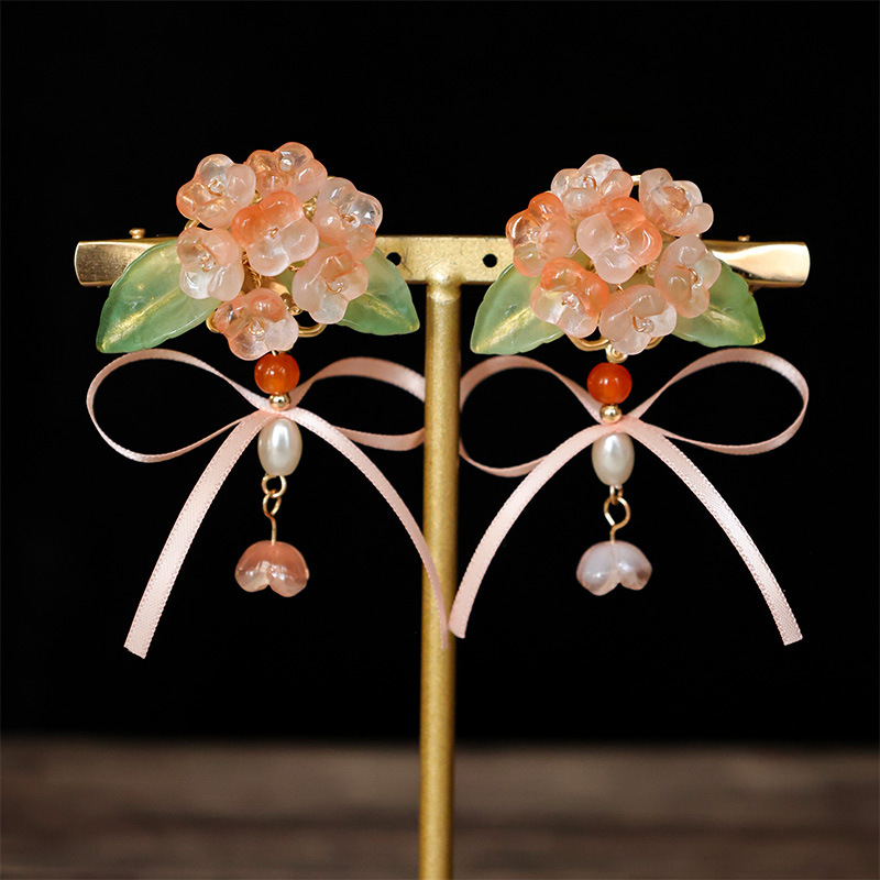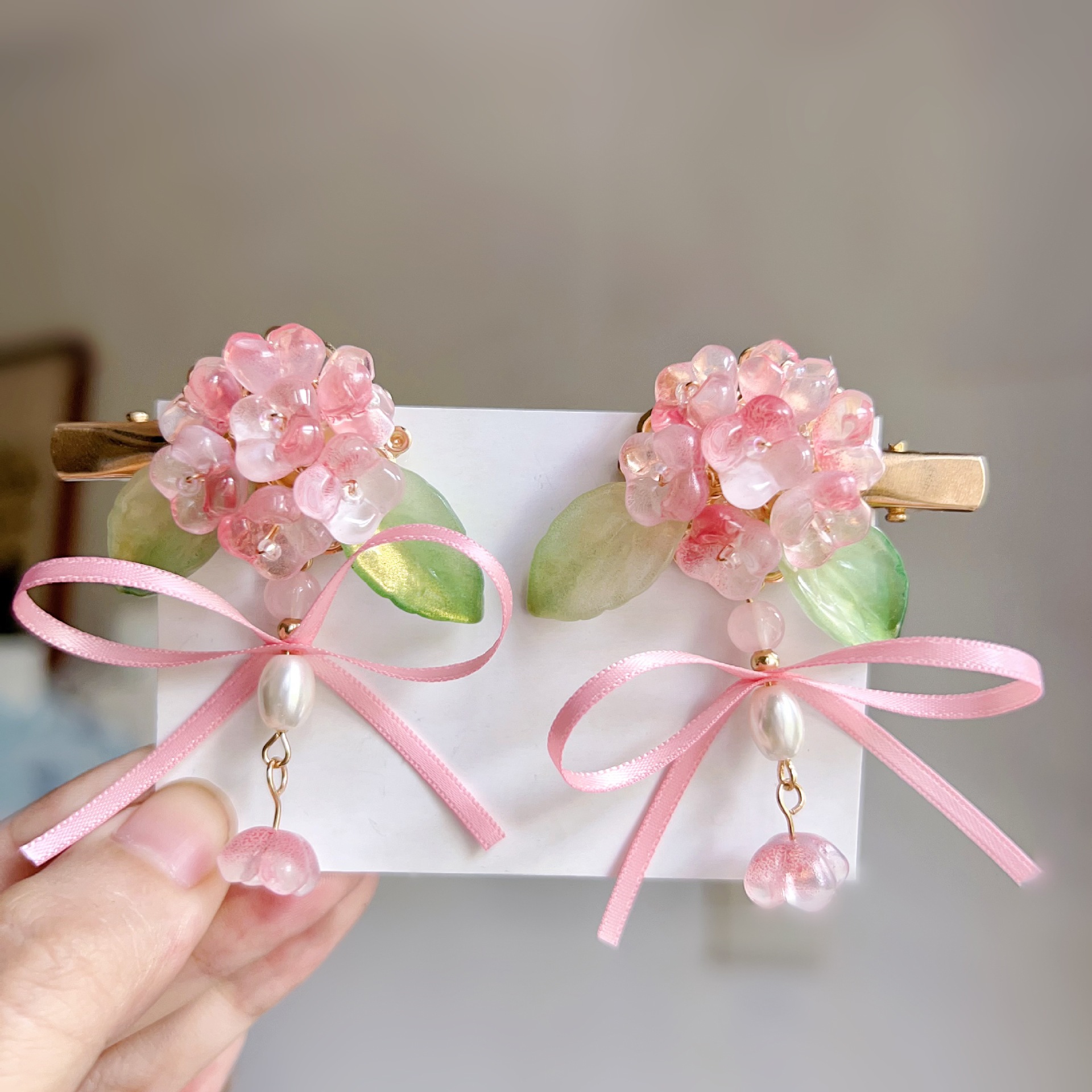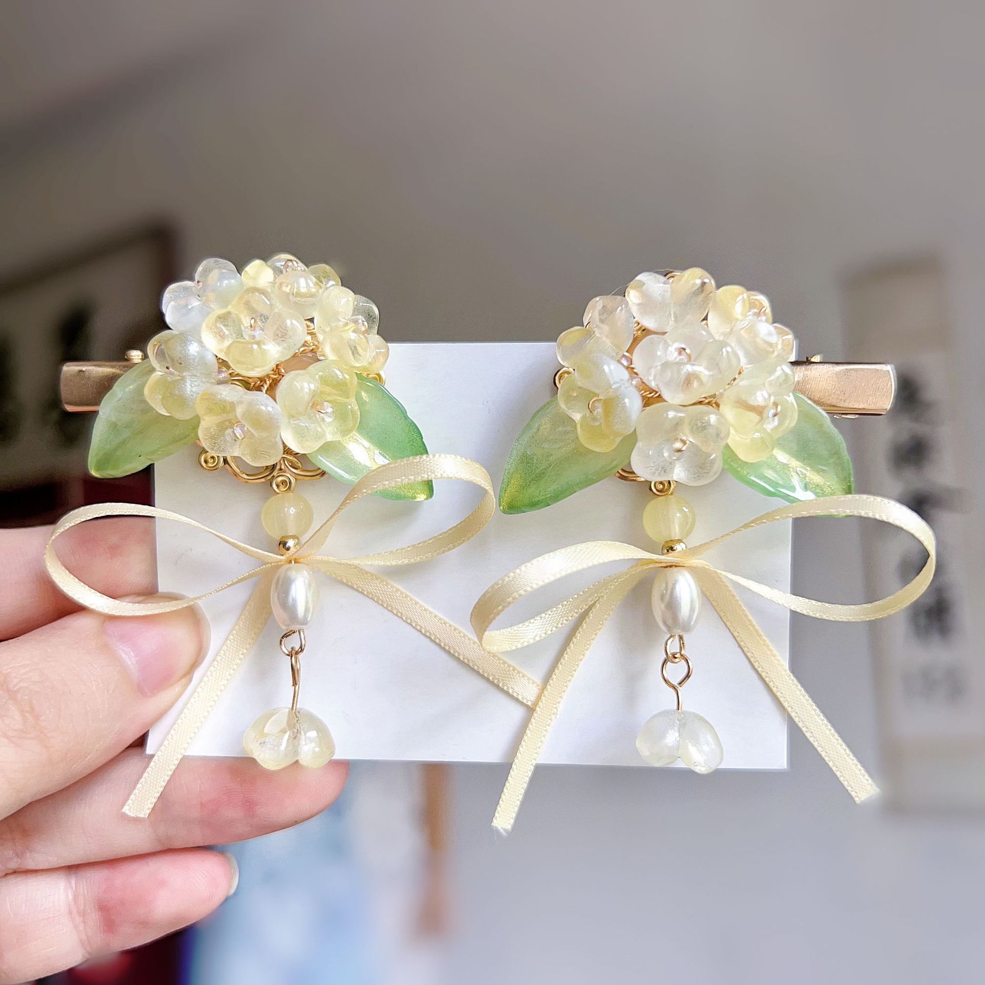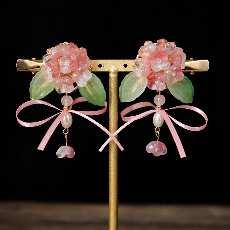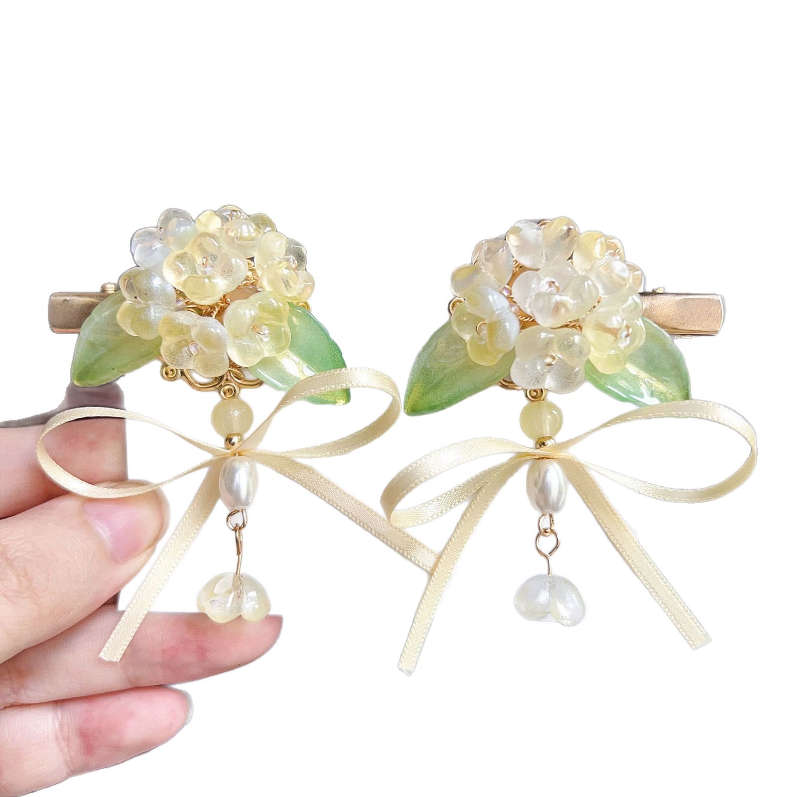 古风儿童绣球花发夹流苏头饰汉服超仙胖桂花飘带对夹蝴蝶结配饰品