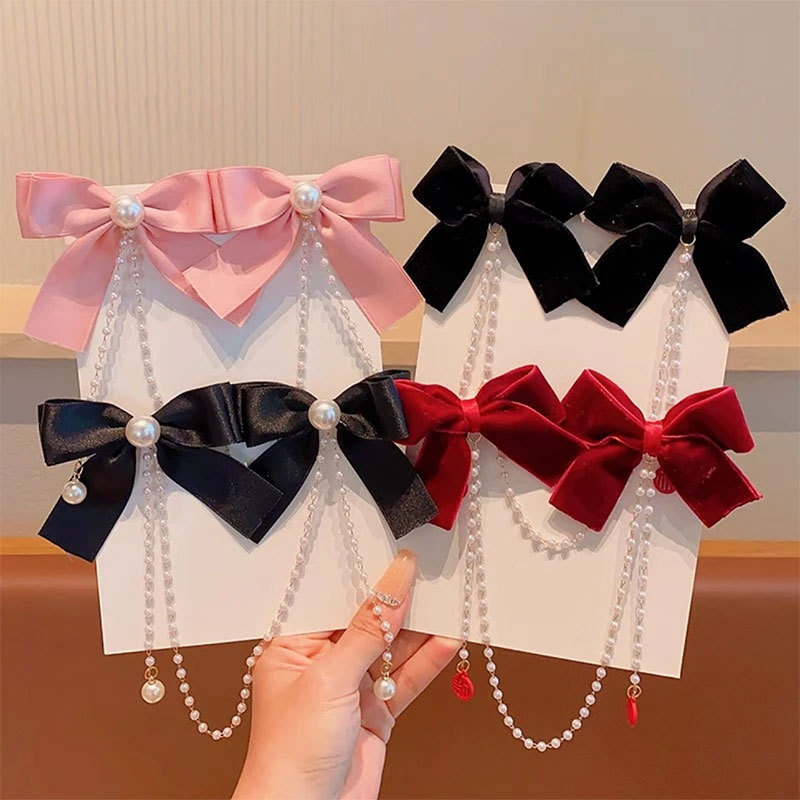 新年发夹儿童过年蝴蝶结吊坠流苏发夹女孩新年宝宝红色中国风头饰