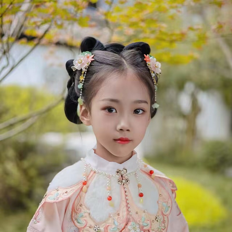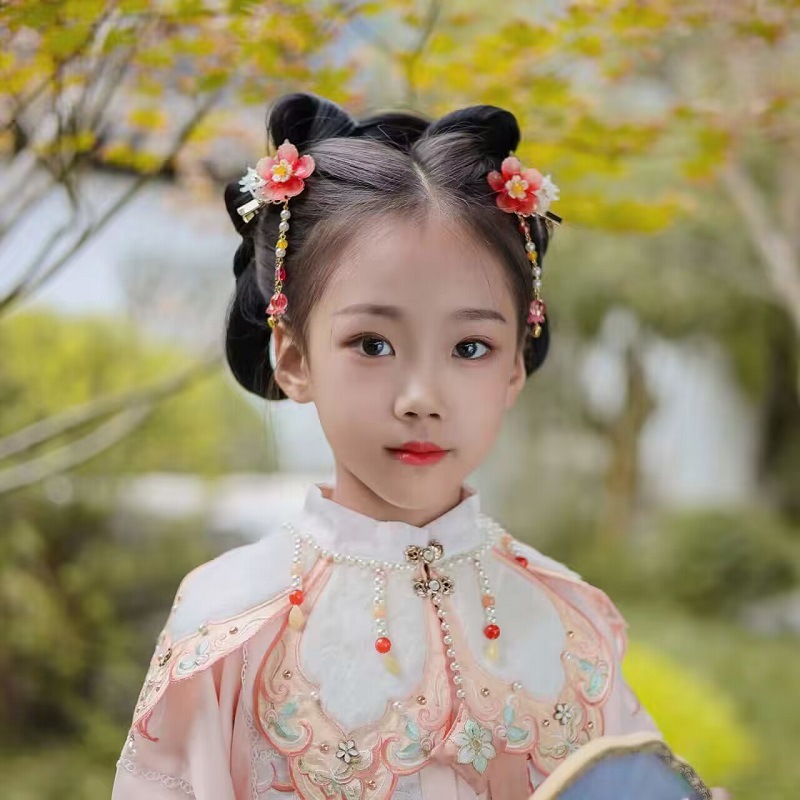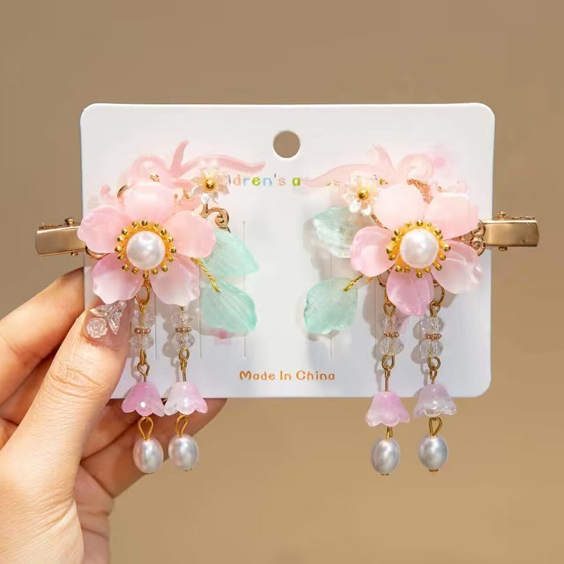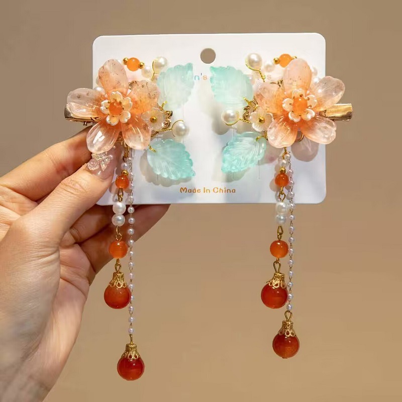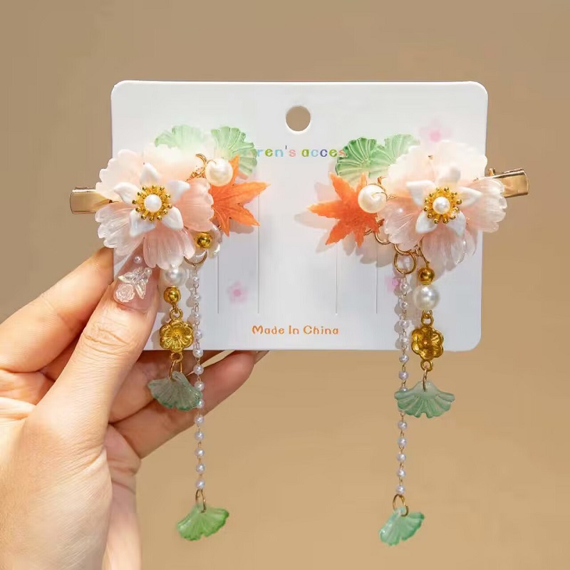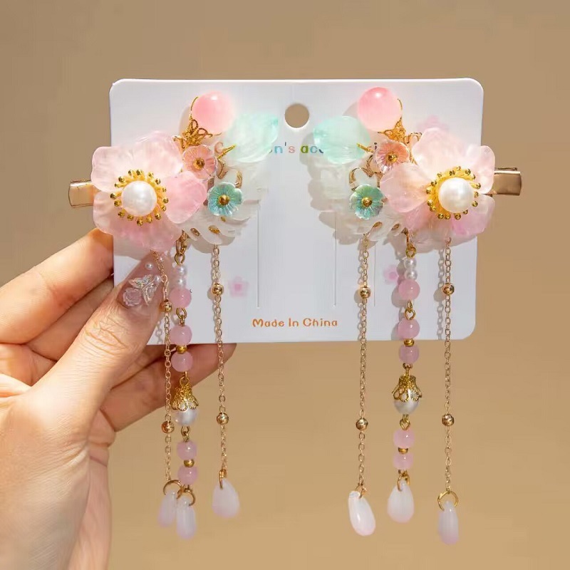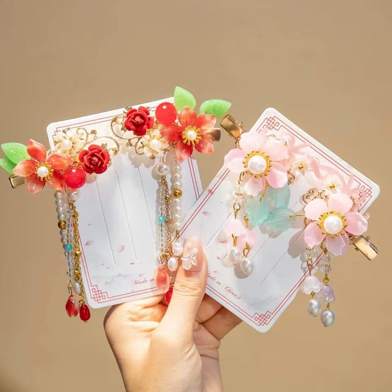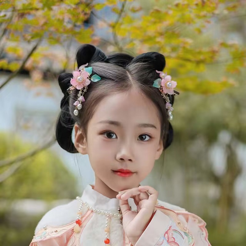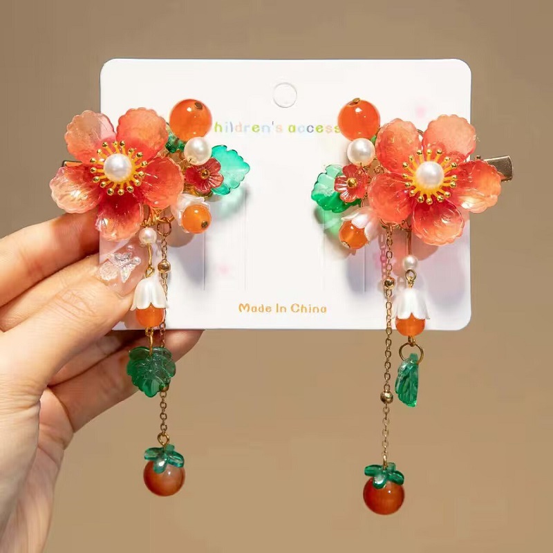 新款红色中国风汉服头饰儿童古风流苏发夹琉璃发卡喜庆新年发饰品