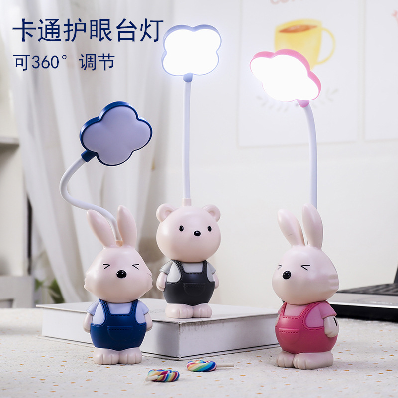 可爱卡通兔子公仔桌面小型迷你充电台灯儿童卧室小夜灯