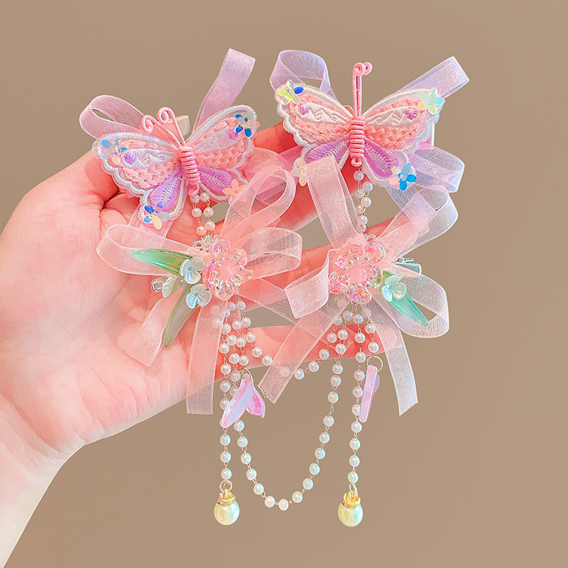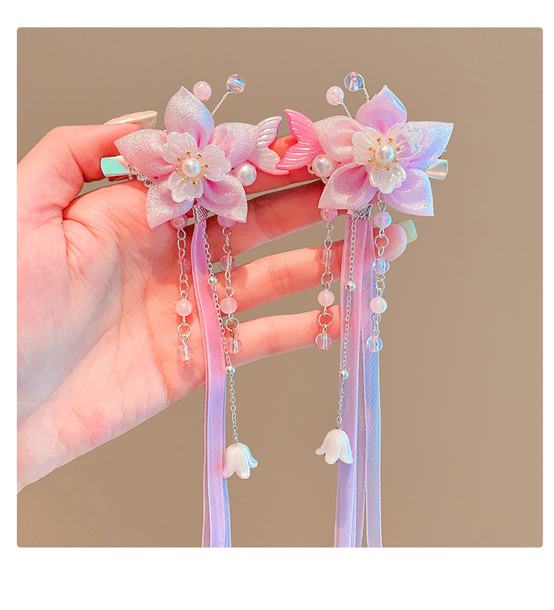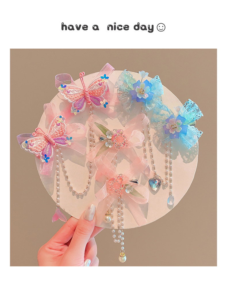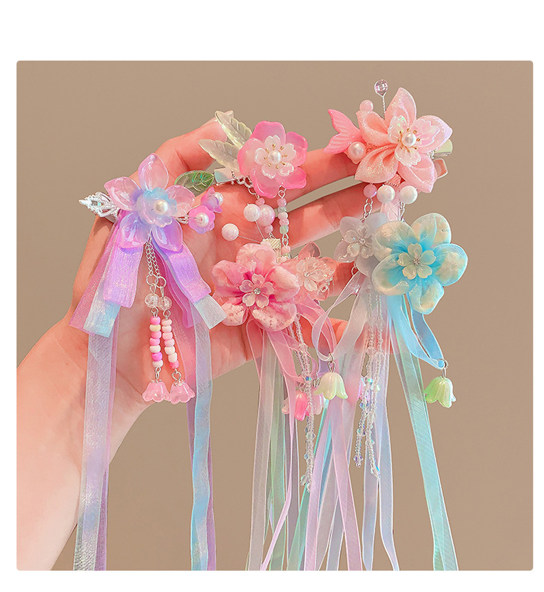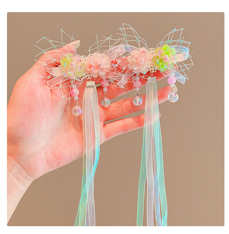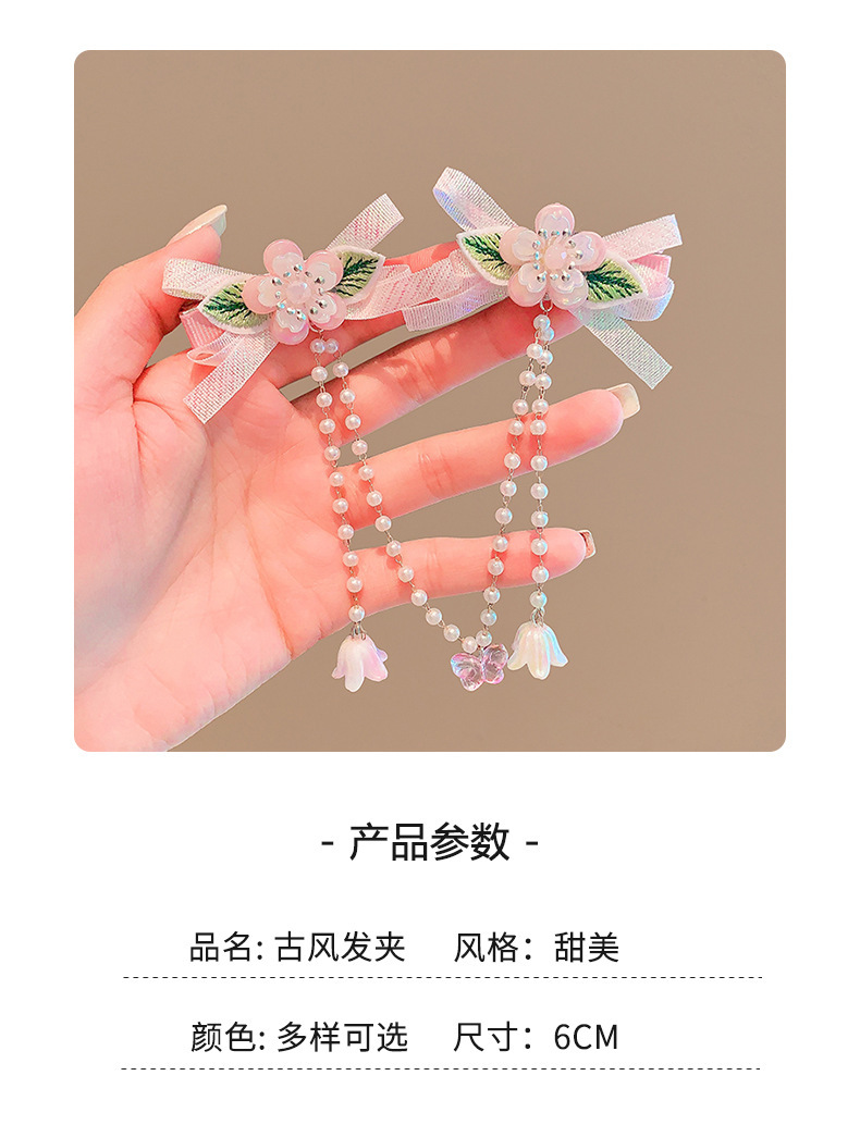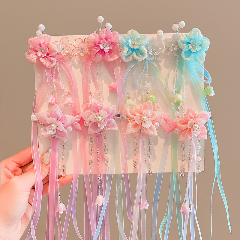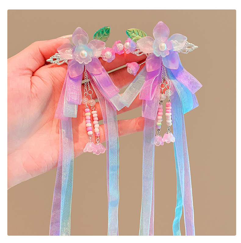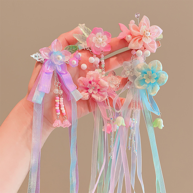 汉服头饰儿童古风发饰飘带发夹女童超仙中国风古装流苏花朵发卡