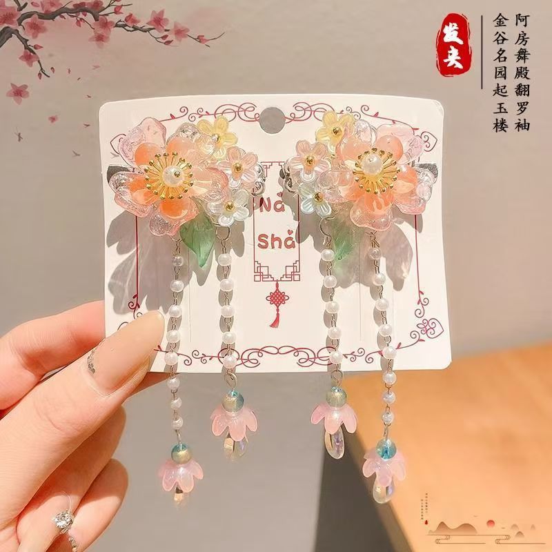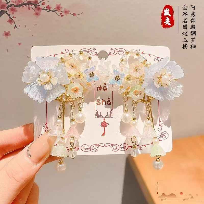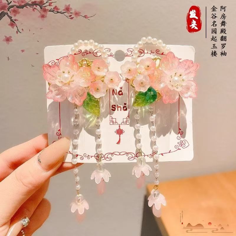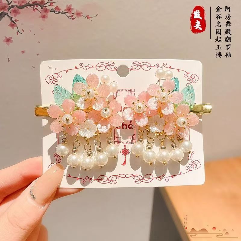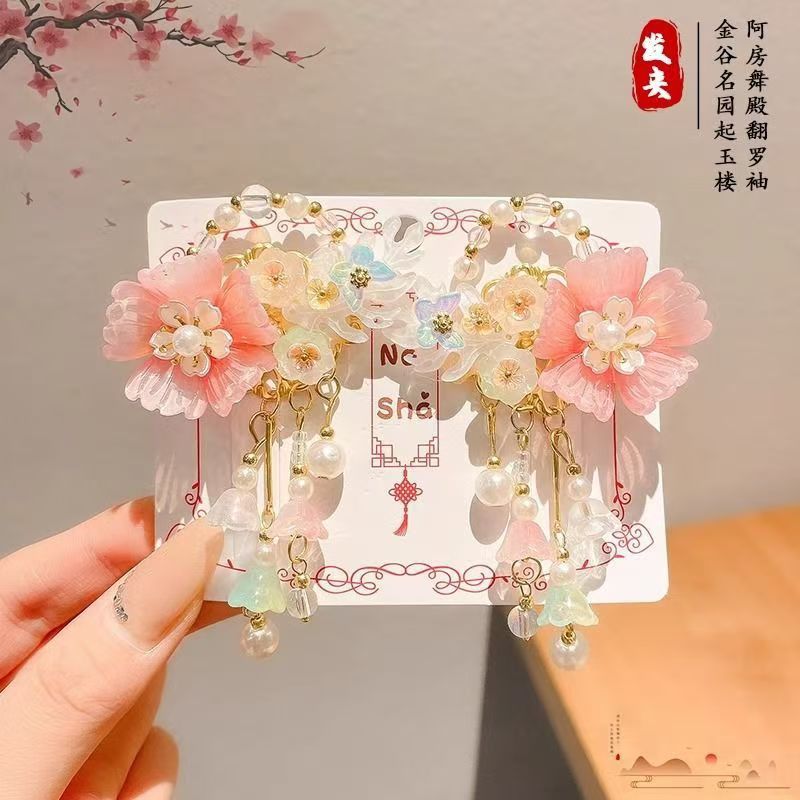 汉服发饰甜美超仙花朵发夹古风对夹头饰发卡儿童公主古装中国风
