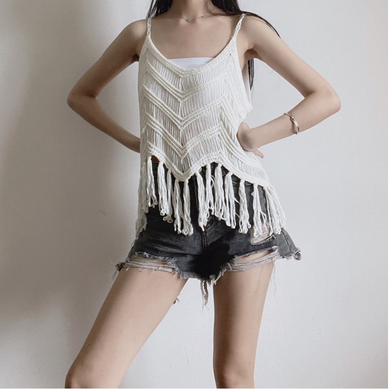 夏季海岛度假风镂空流苏波浪罩衫手钩针织时尚外搭吊带背心女外穿