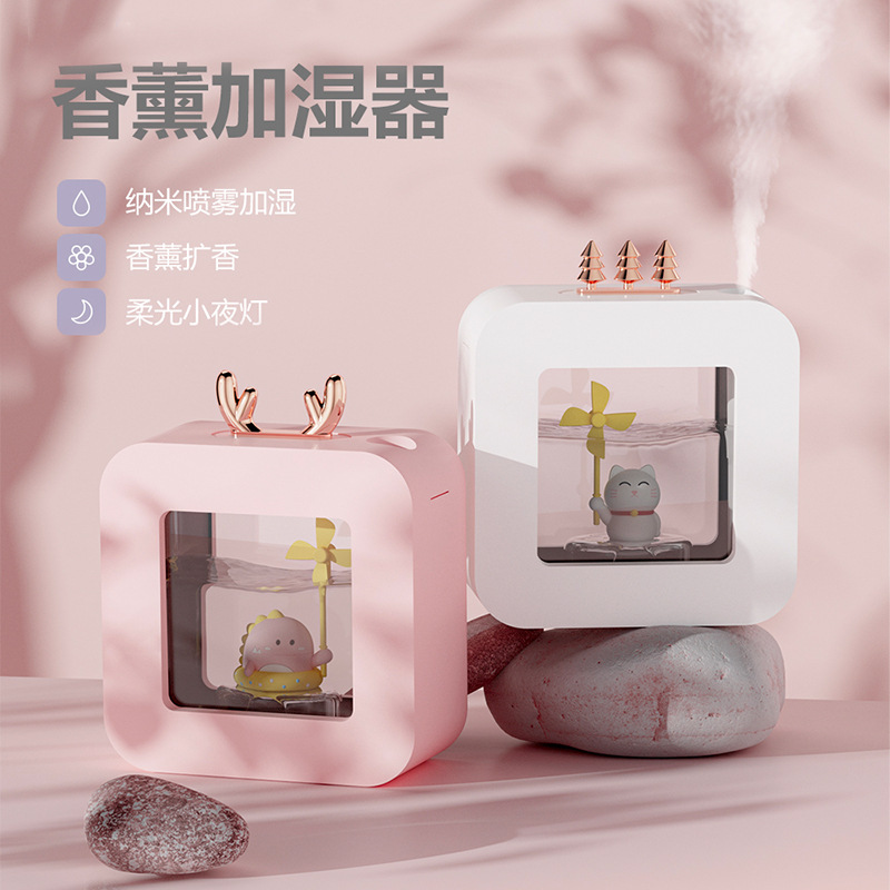 宠立方香薰加湿器小型家用卧室补水喷雾可爱卡通空气净化器小夜灯
