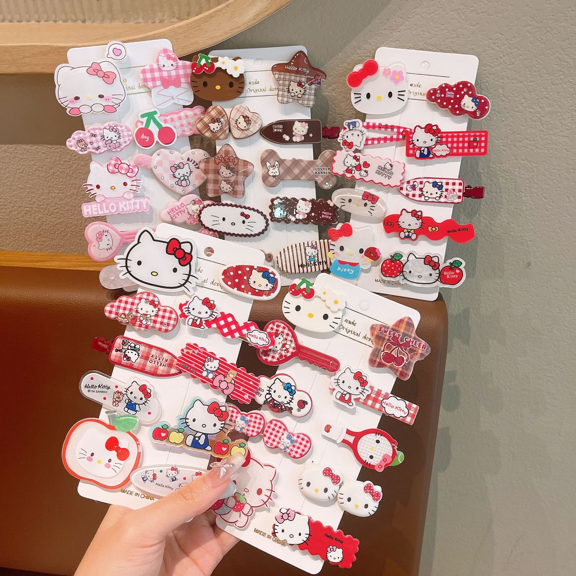 TFJ092-3#红色樱桃猫咪发夹10件套