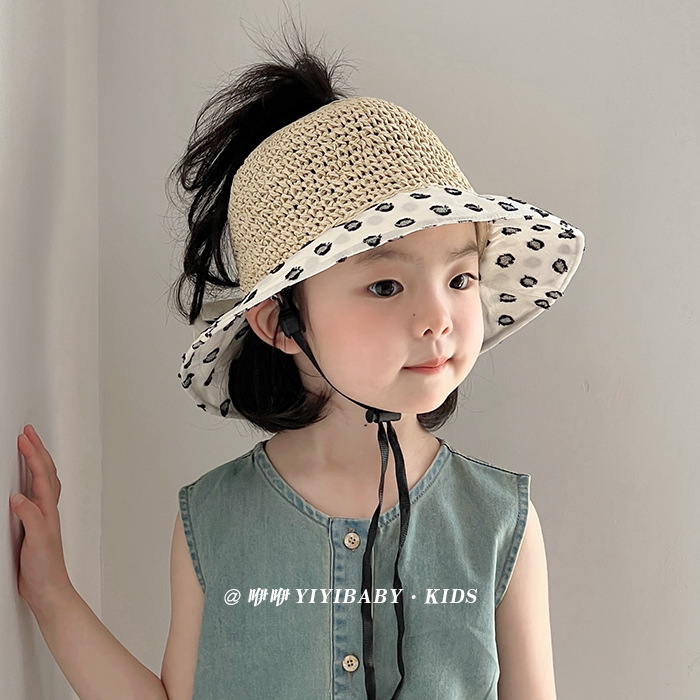 女童帽子夏季大檐洋气空顶草帽透气儿童遮阳防晒帽宝宝出游太阳帽