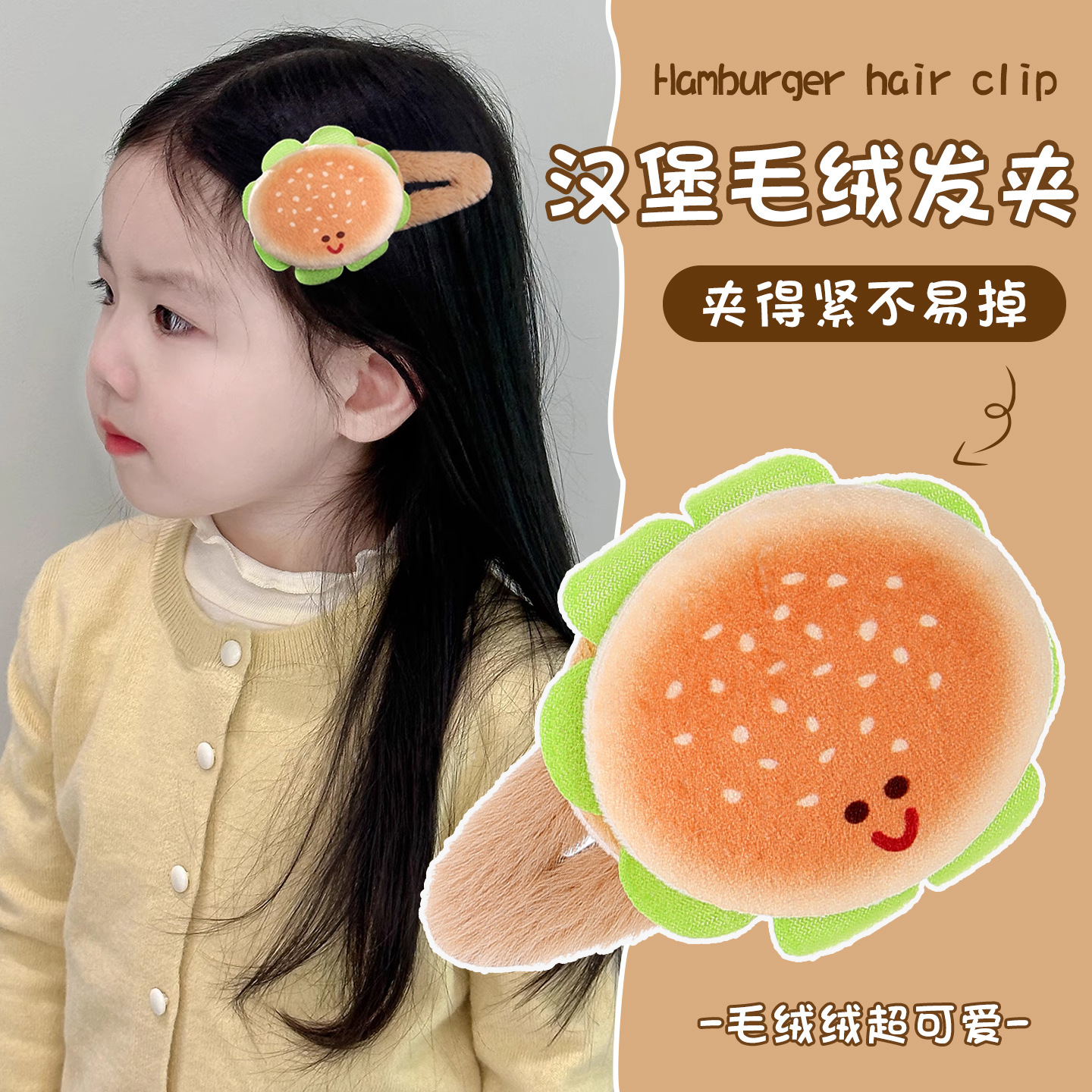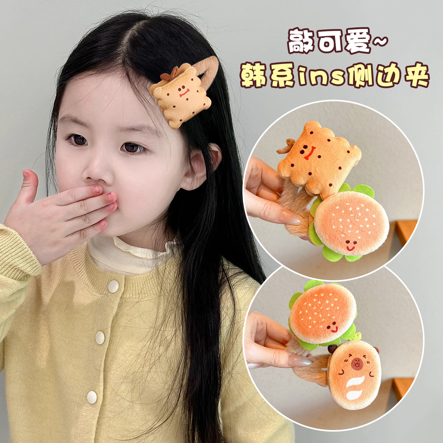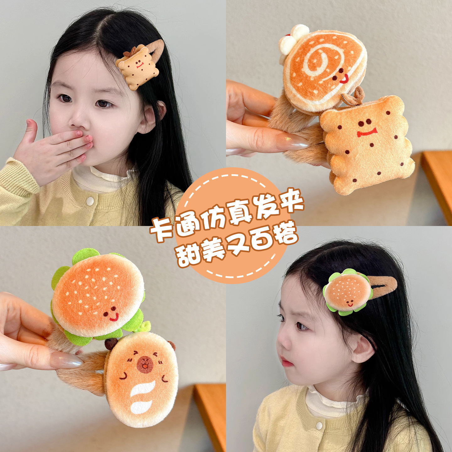 咖色卡通可爱汉堡食物发夹女刘海夹吐司面包发卡儿童碎发bb夹头饰