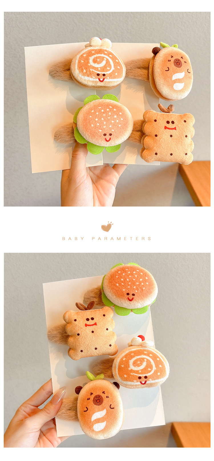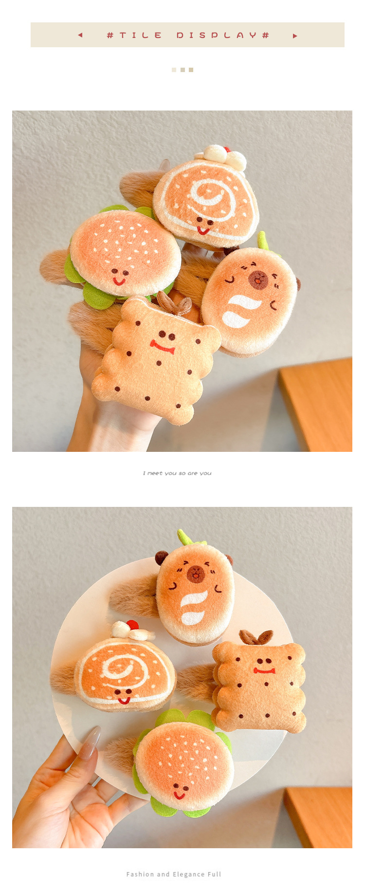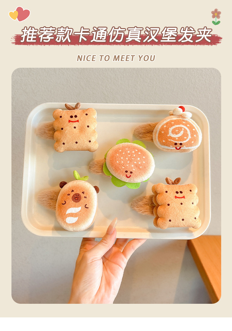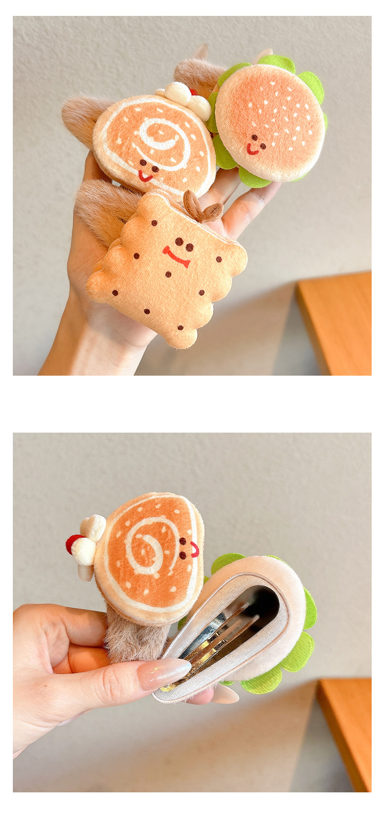 咖色卡通可爱汉堡食物发夹女刘海夹吐司面包发卡儿童碎发bb夹头饰