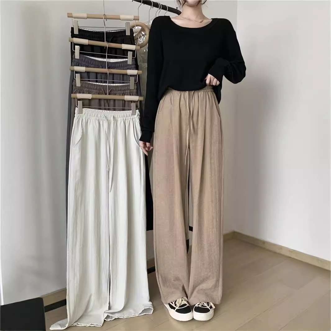 灰色运动裤女夏季新款宽松条纹薄款直筒阔腿裤小个子休闲卫裤