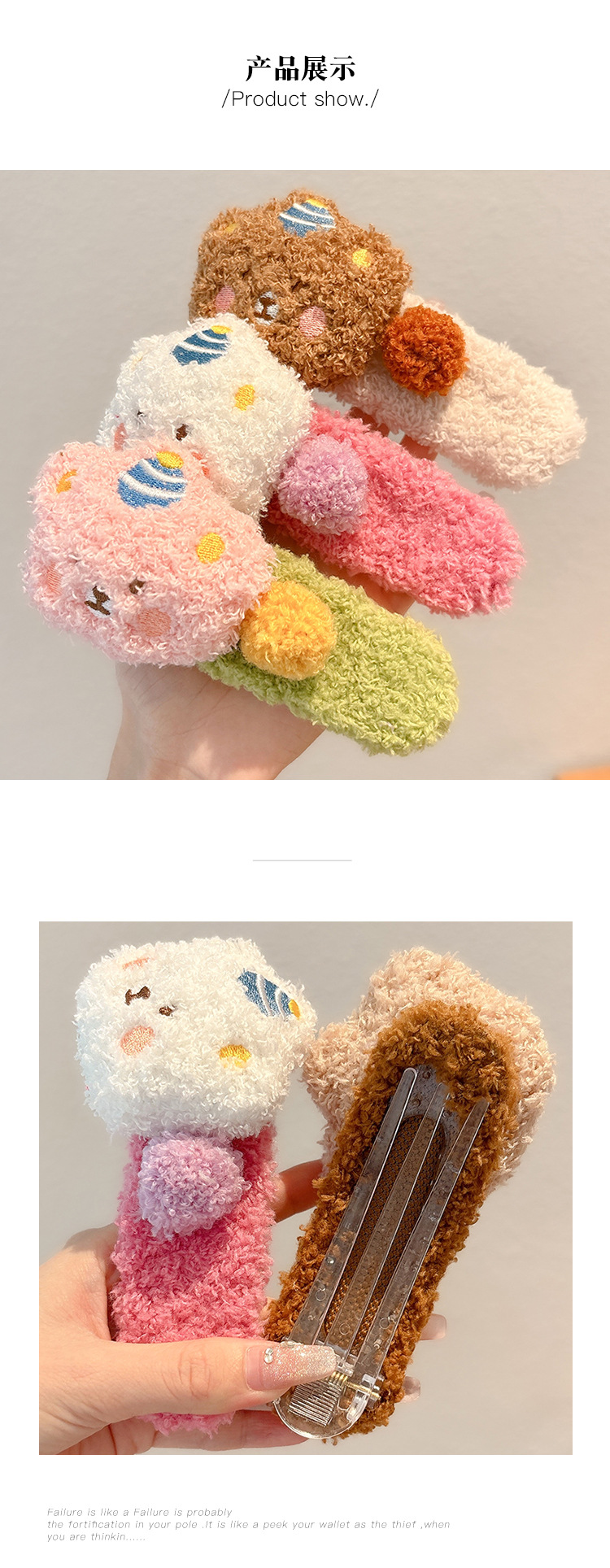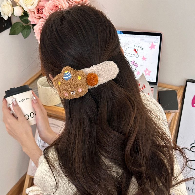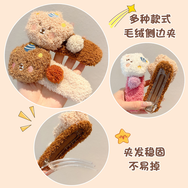 新款卡通毛绒小熊发夹女大号侧边夹子可爱甜美儿童碎发鸭嘴夹发饰