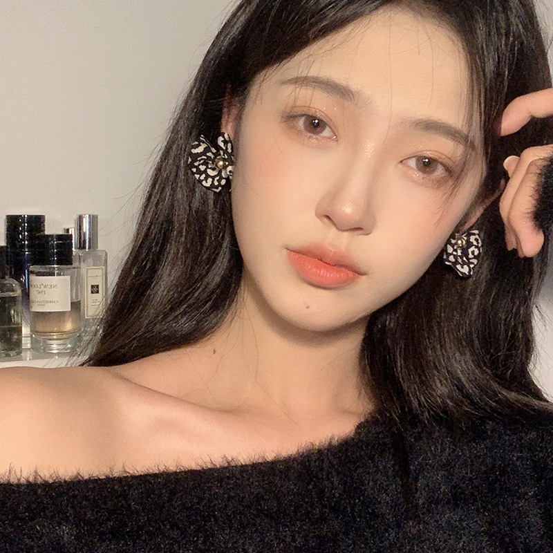 法式复古波点少女小香风耳环黑白豹纹蝴蝶结耳钉气质高级感耳饰品