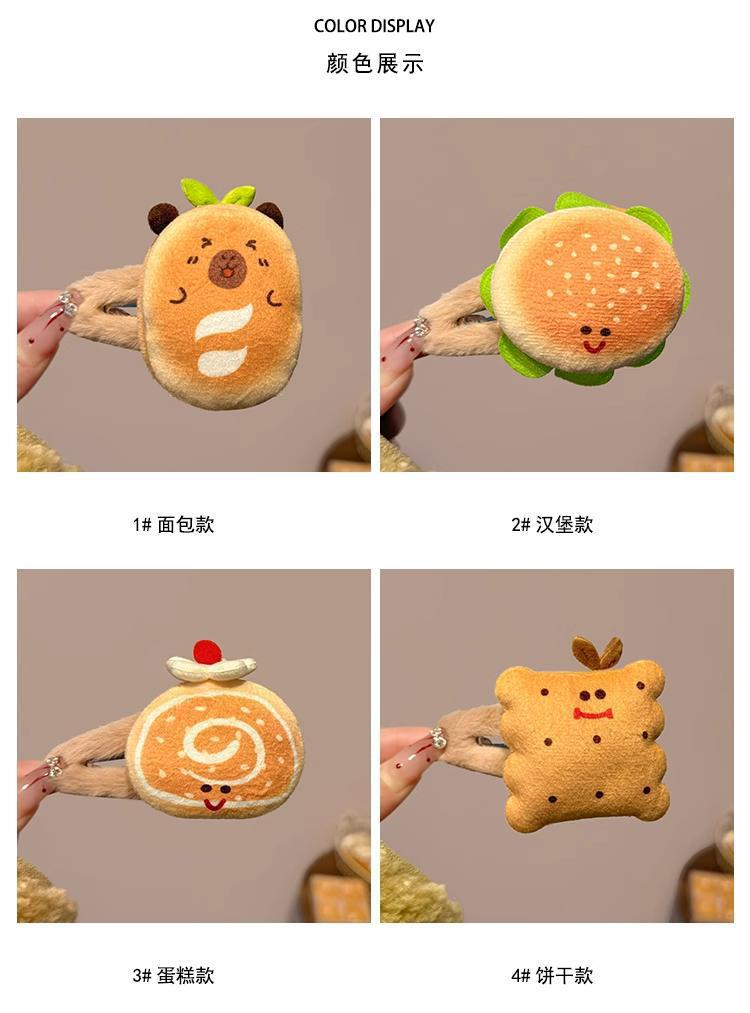 咖色卡通可爱汉堡发夹女刘海夹吐司面包毛绒发卡儿童碎发bb夹头饰