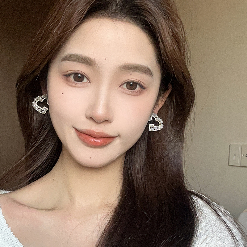 轻奢锆石珍珠爱心耳钉小众高级感气质耳环个性独特设计感镂空耳饰