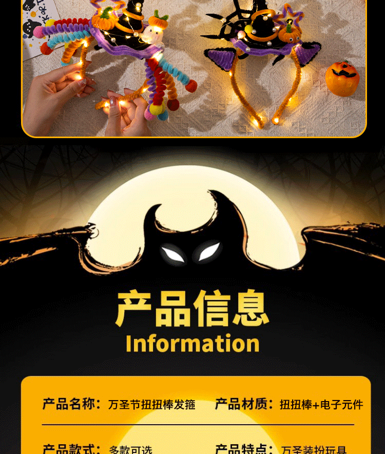 发光款【万圣节发箍-小南瓜】扭扭棒材料包