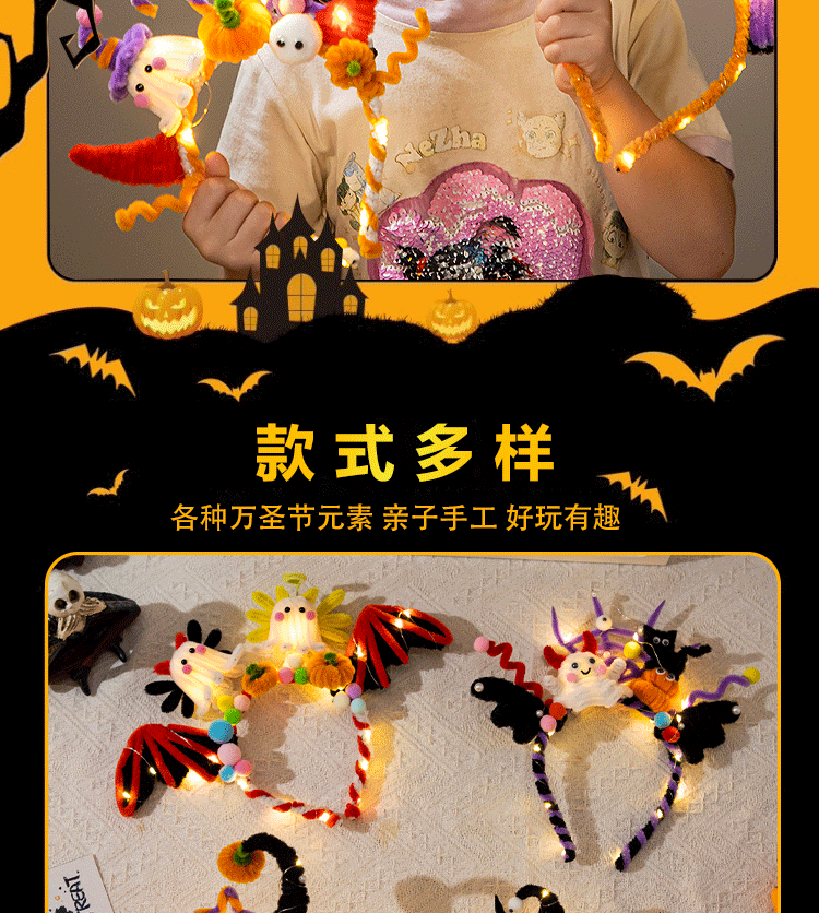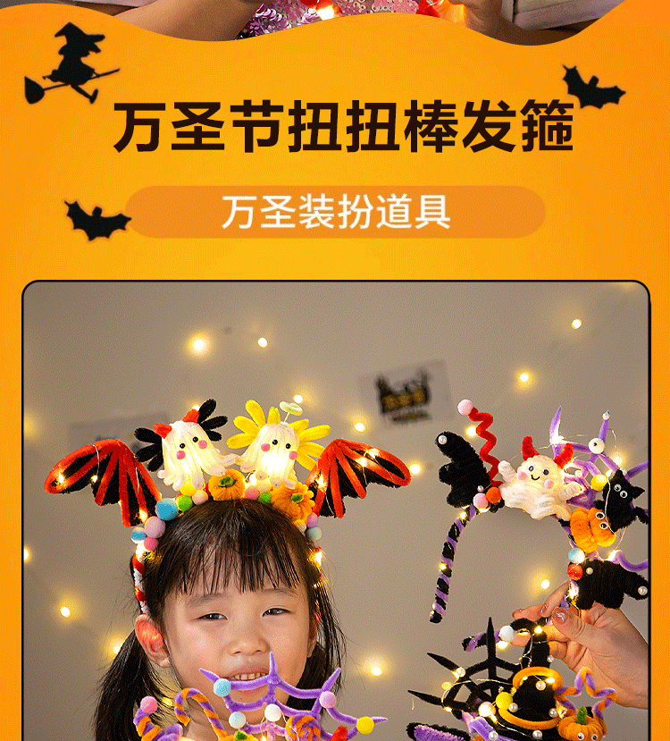 发光款【万圣节发箍-小蜘蛛】扭扭棒材料包