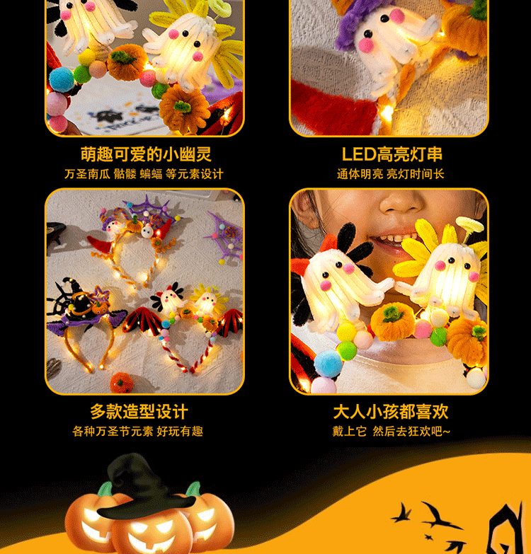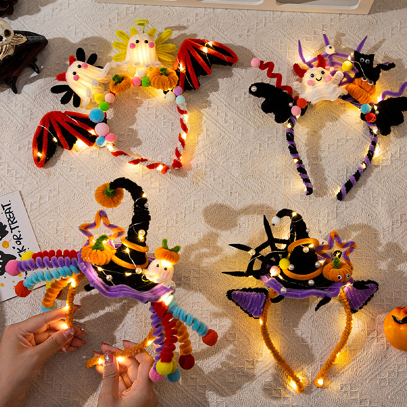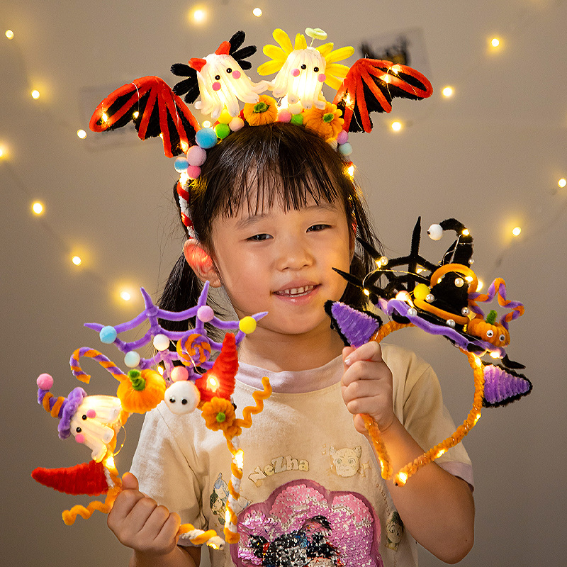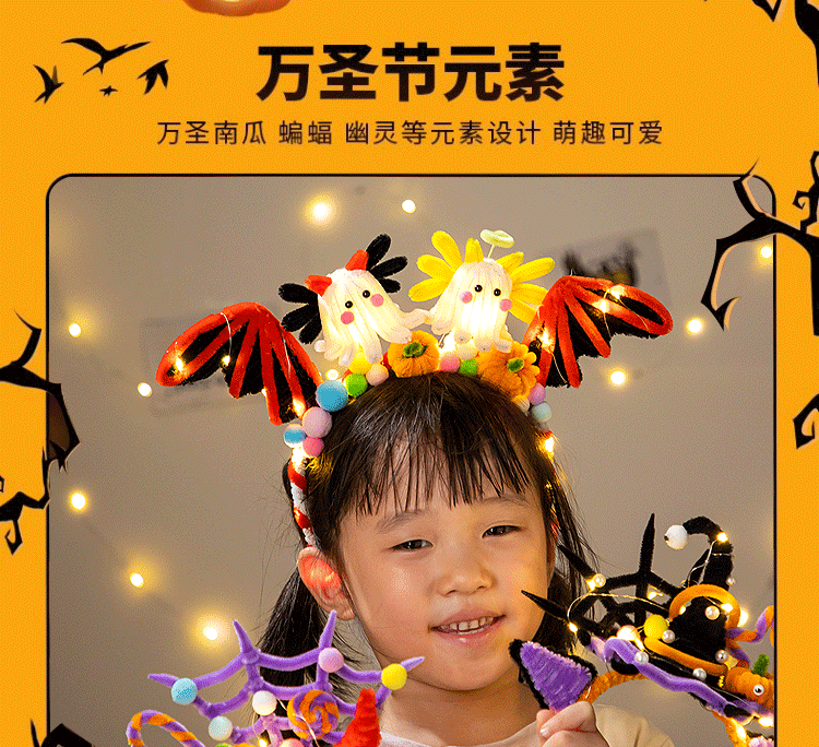 万圣节南瓜灯发箍发光扭扭棒儿童diy材料包聚会搞怪头饰装扮道具