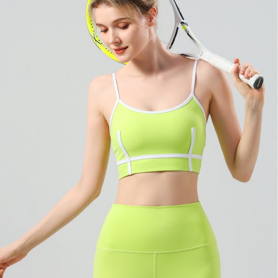 跨境外贸欧美时尚背心撞色吊带胸垫瑜伽服套装运动文胸内衣健身裤