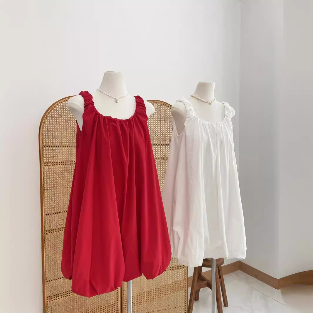 纯欲无袖小众温柔舒适吊带背心连衣裙女夏季气质显瘦短款花苞裙子