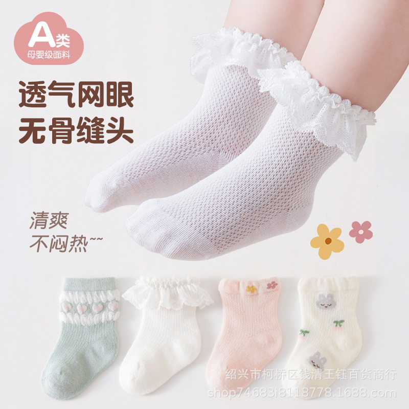 A类婴儿袜子夏季薄款松口新生儿袜男女宝宝透气网眼袜中筒袜无骨