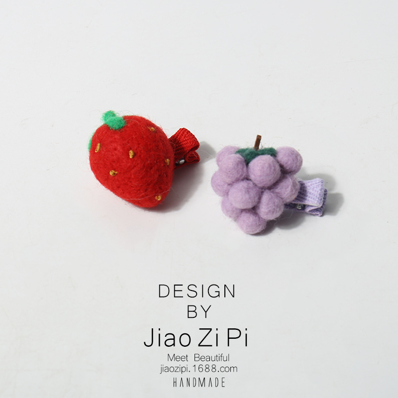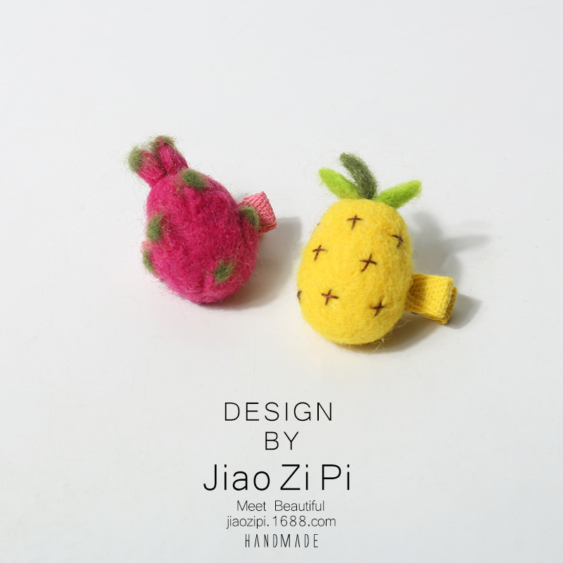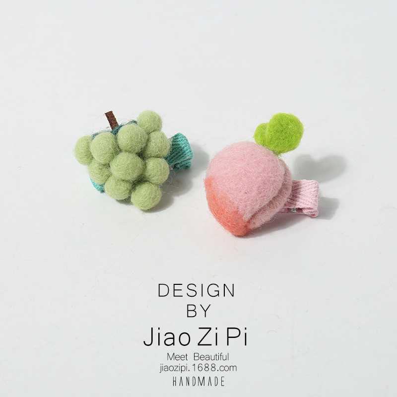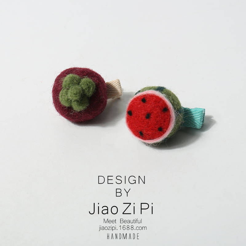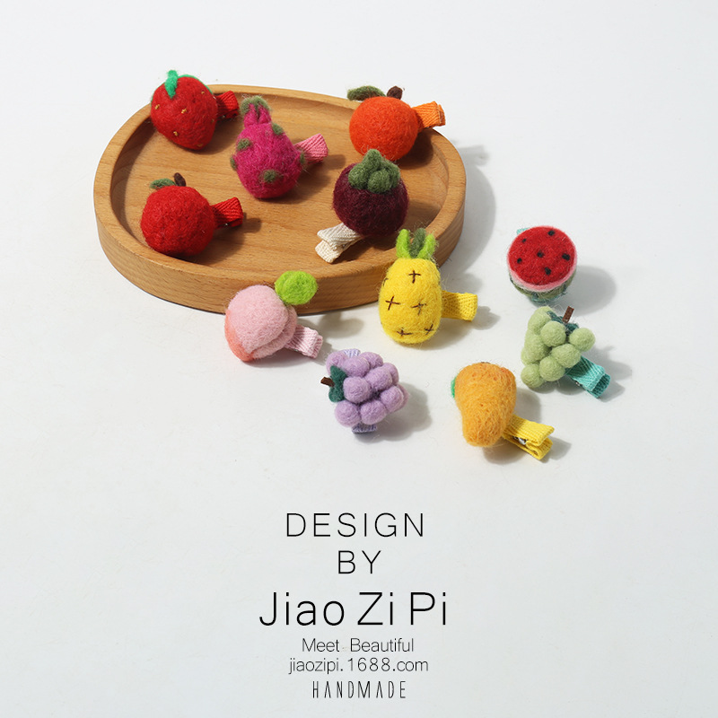新款手工羊毛毡立体仿真水果发夹侧边刘海夹小夹子可爱童趣发饰