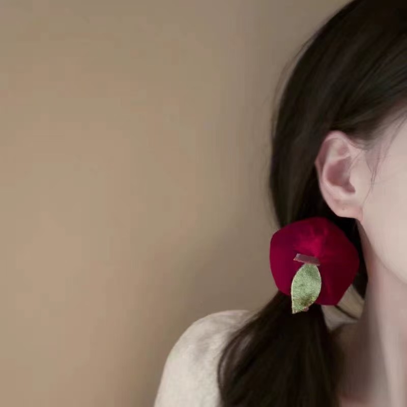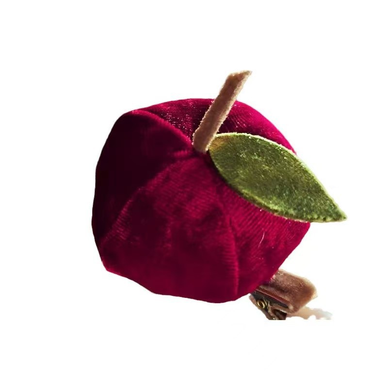 平安夜~圣诞红色苹果发夹女可爱丝绒边夹侧边夹卡通新年头发饰品