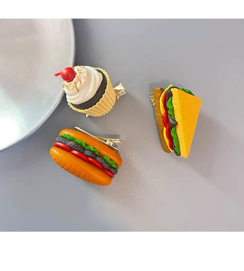搞怪仿真食物食玩汉堡可爱搞笑卡通卡子儿童发夹发卡女童薯条蛋糕