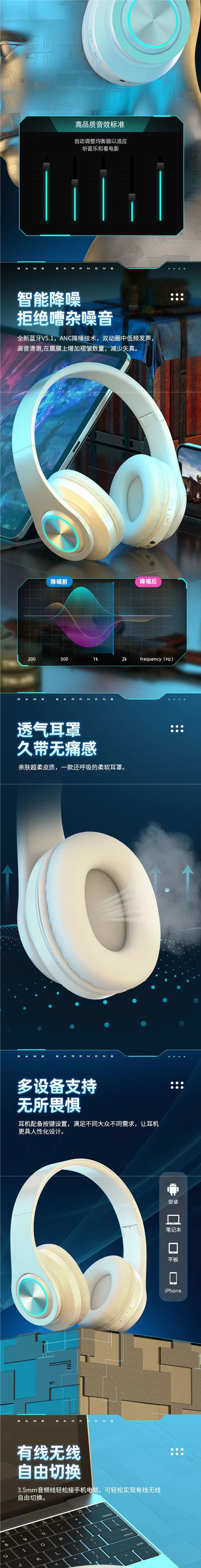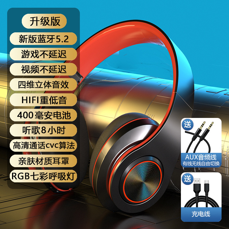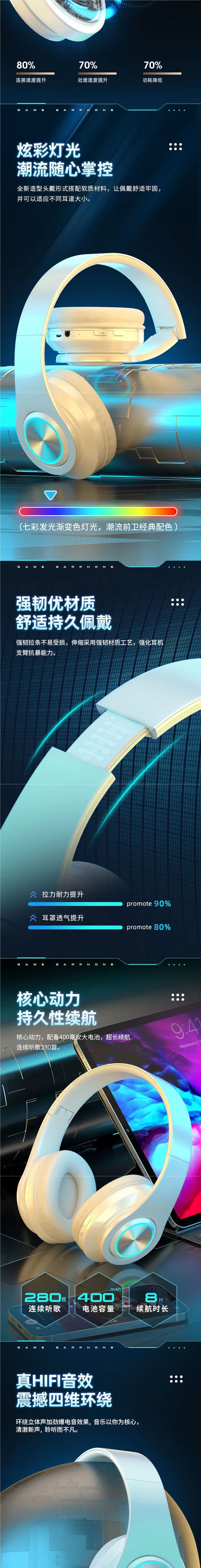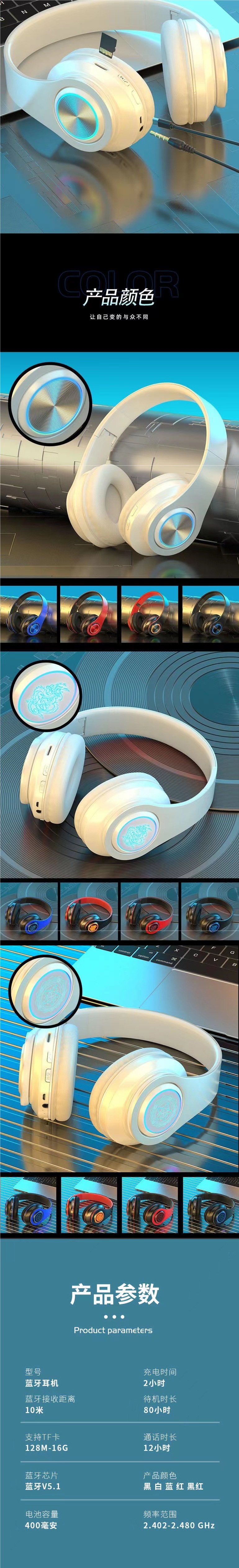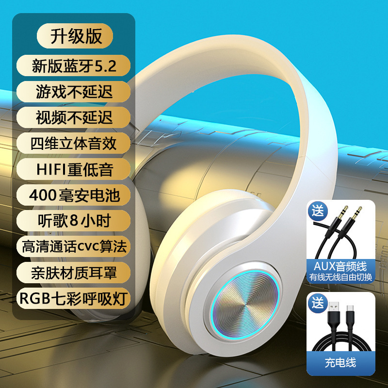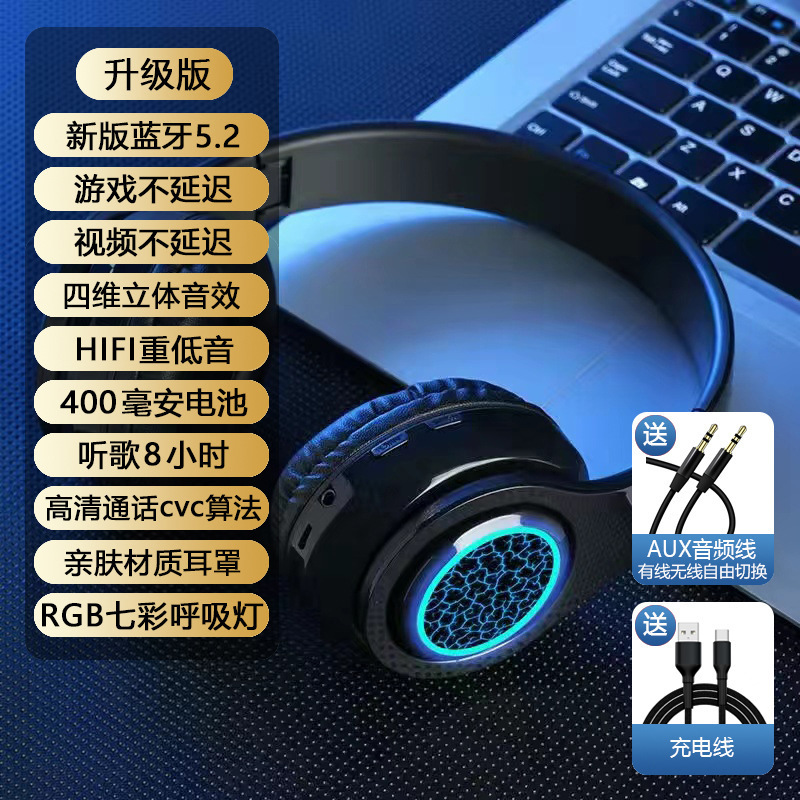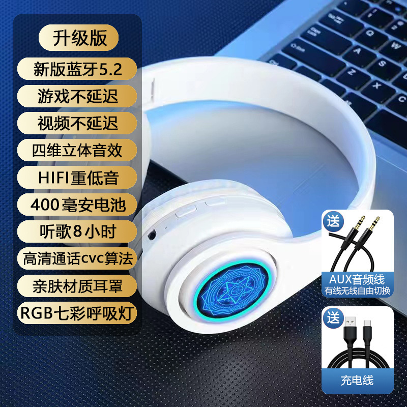 无线头戴式蓝牙耳机发光高颜值女生大耳罩游戏电竞专用学生版男生