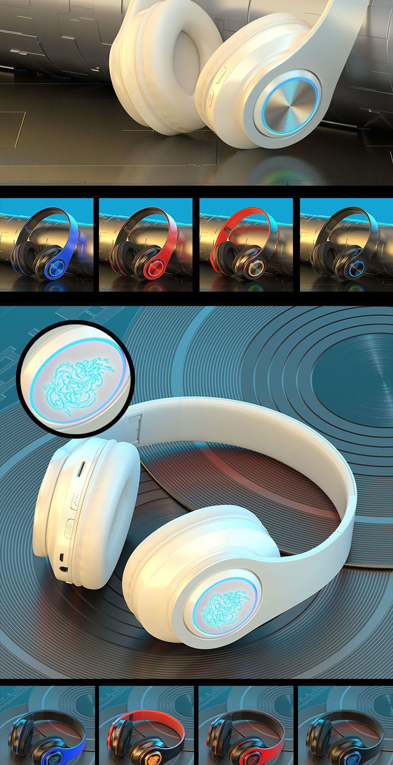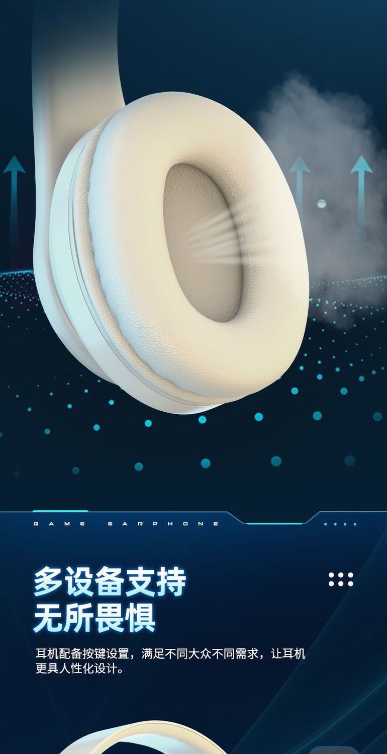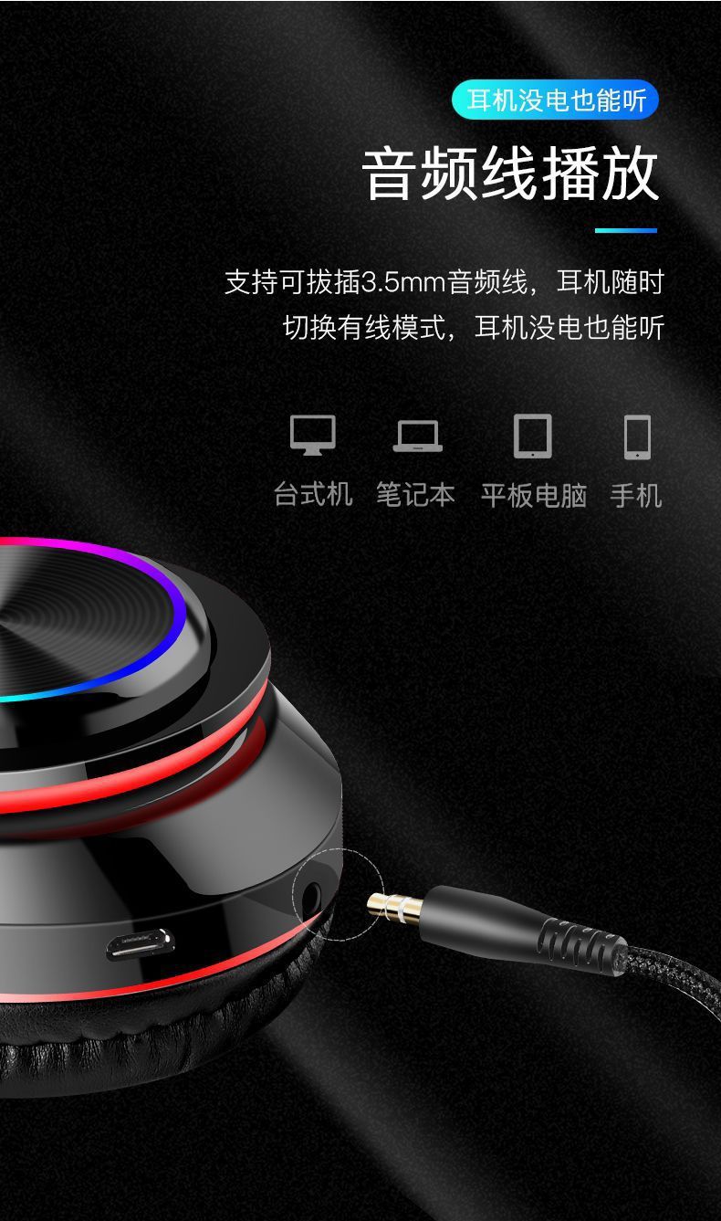 无线蓝牙耳机发光头戴式重低音耳机OPPO华为vivo苹果安卓适用耳麦
