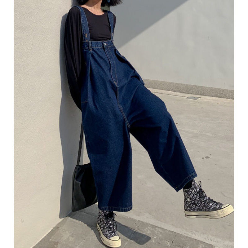 设计感牛仔背带裤女春夏新款胖妹妹大码女装宽松韩版连体裤