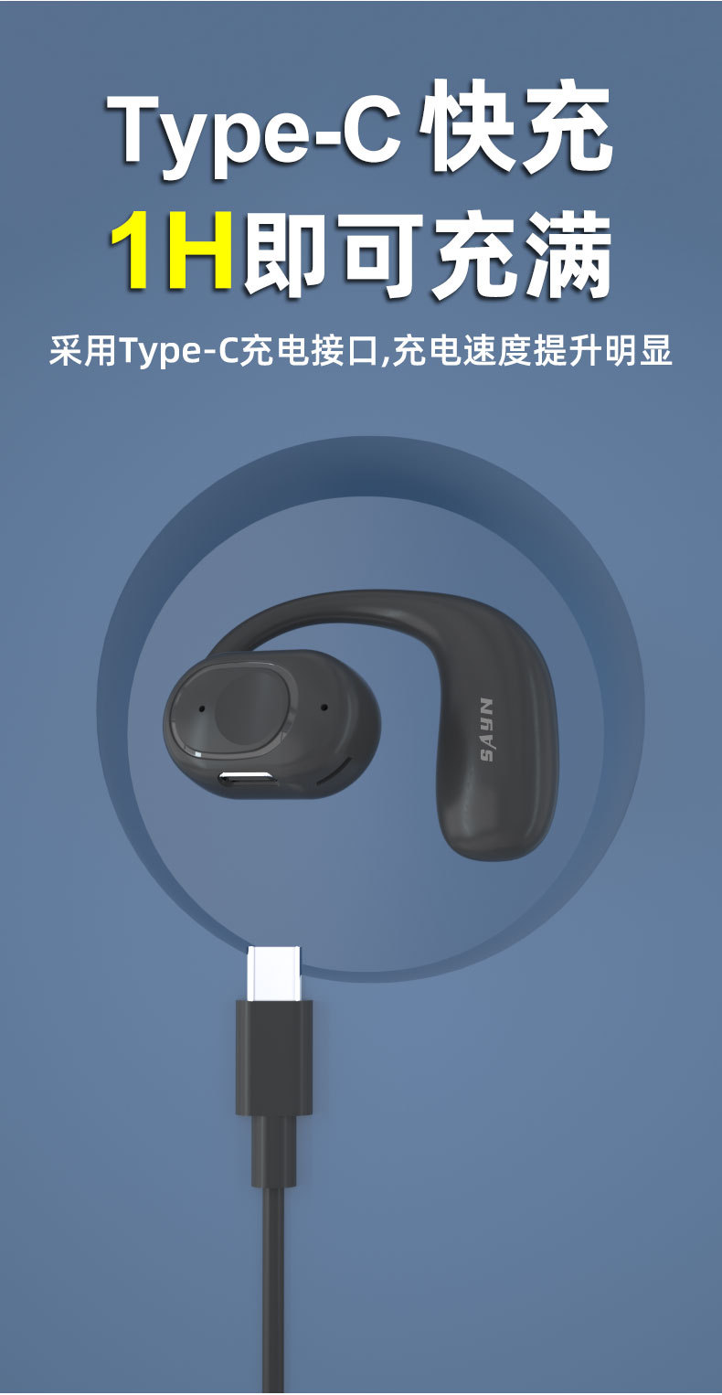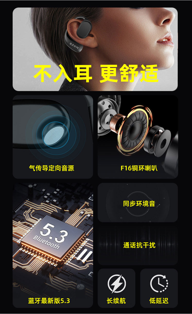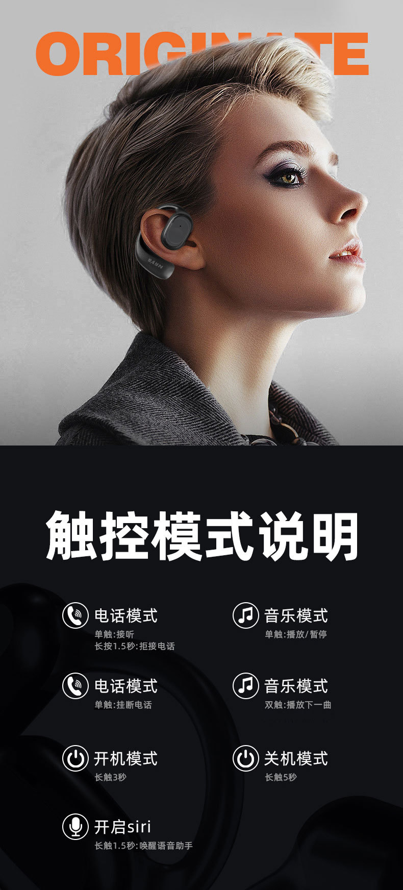 新款骨传导蓝牙耳机运动降噪耳夹式OWS无线超长续航