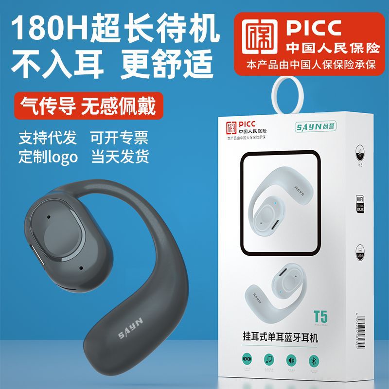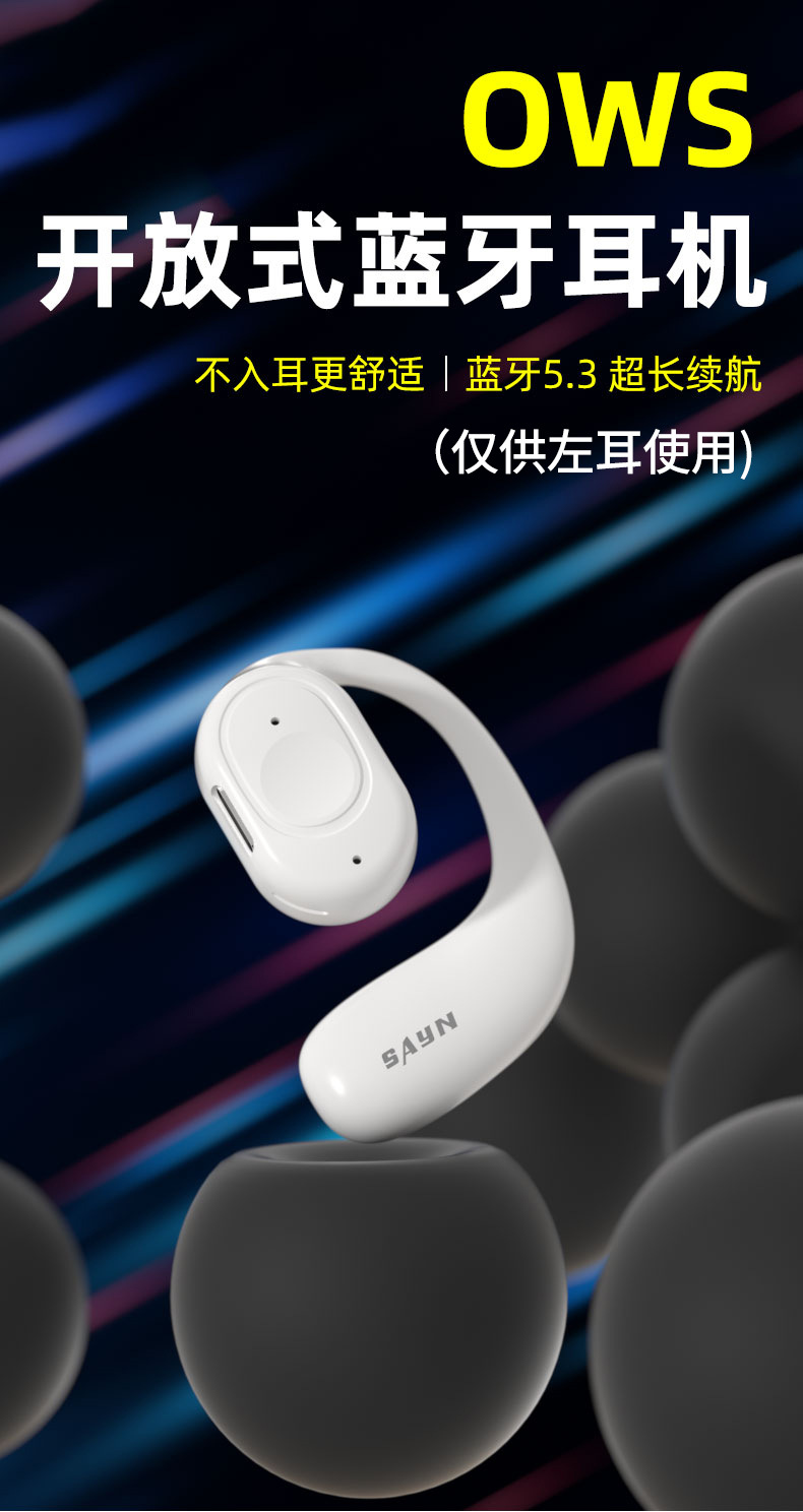 气传导无线耳机蓝牙5.3不入耳超长待机挂耳式单边立体声蓝牙耳机