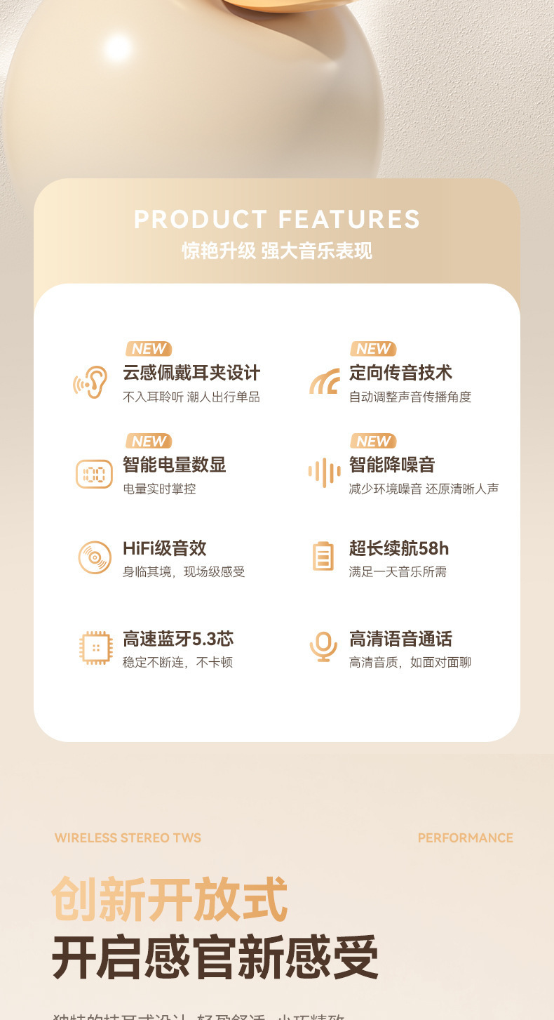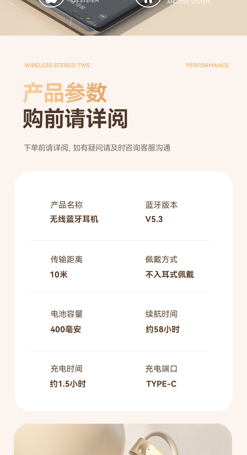 2025新款智能Ai语音挂耳式蓝牙耳机无线降噪运动不入耳耳机