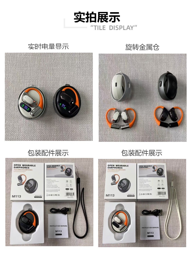 2025新款M113智能AI翻译不入耳挂耳式TWS华强北无线蓝牙耳机
