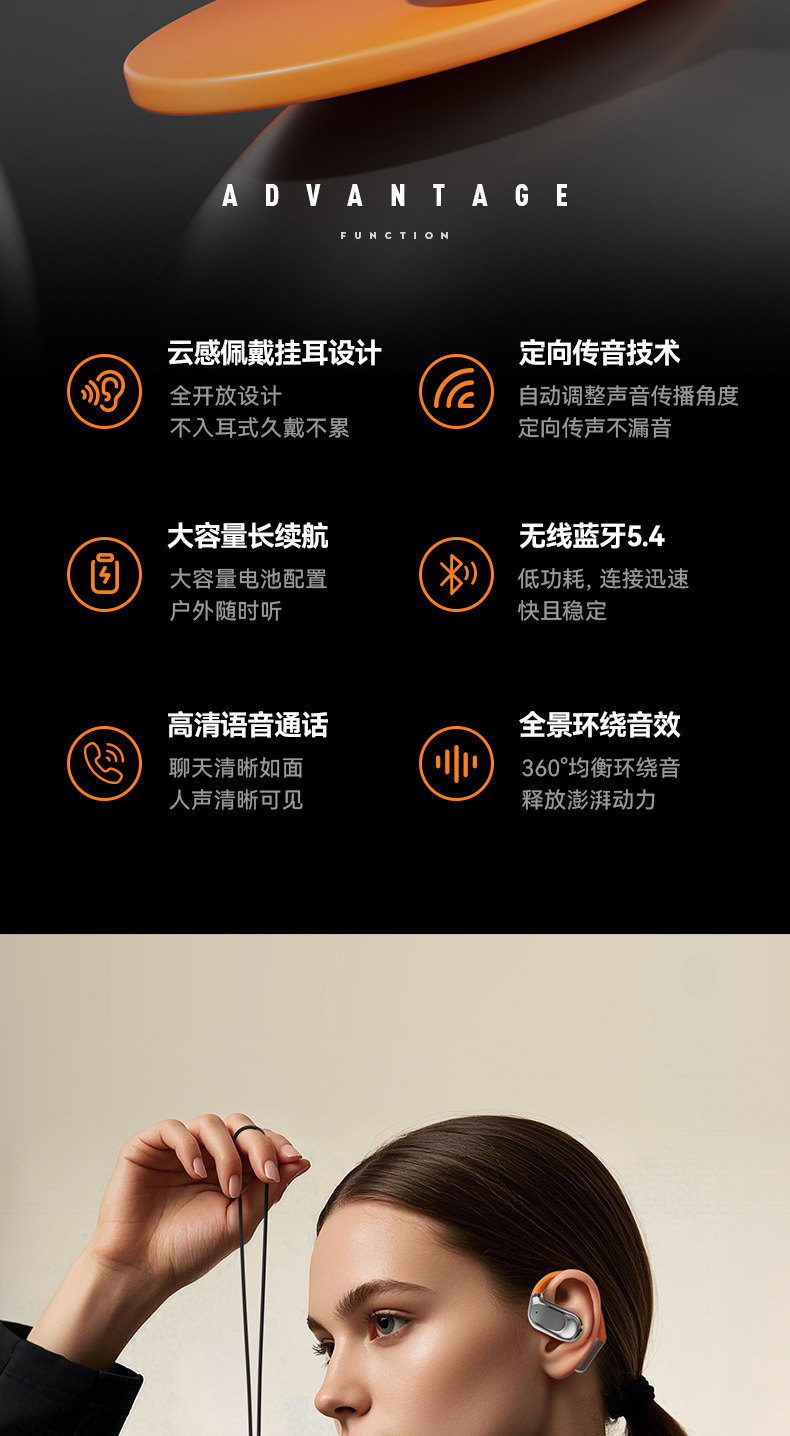 蓝牙耳机开放式挂耳式无线运动新款降噪通用超长续航
