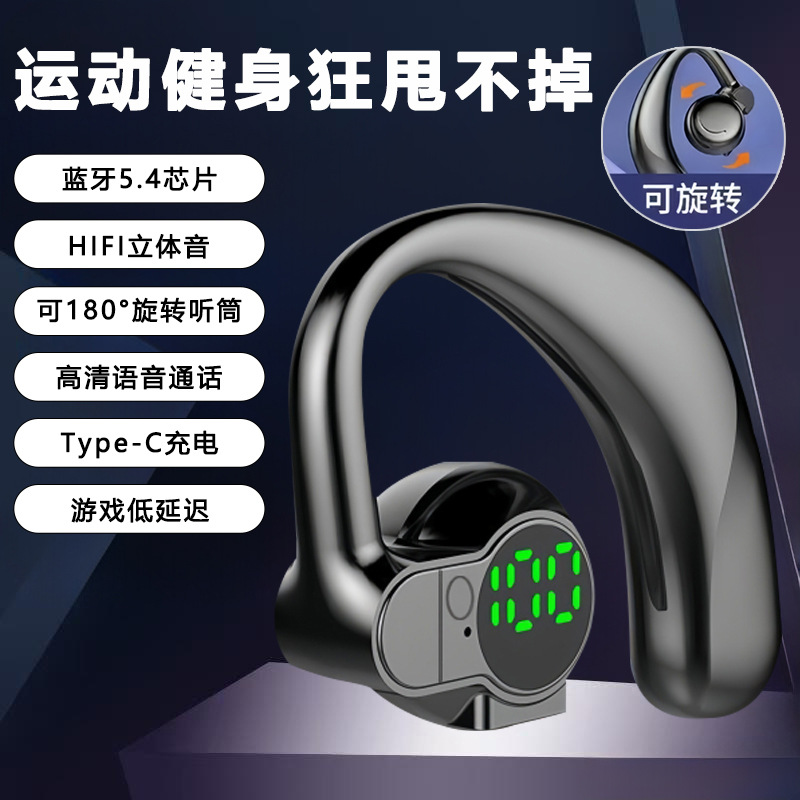 防水无线耳挂蓝牙5.4降噪耳机超长续航蓝牙耳机可旋转立体音效S03