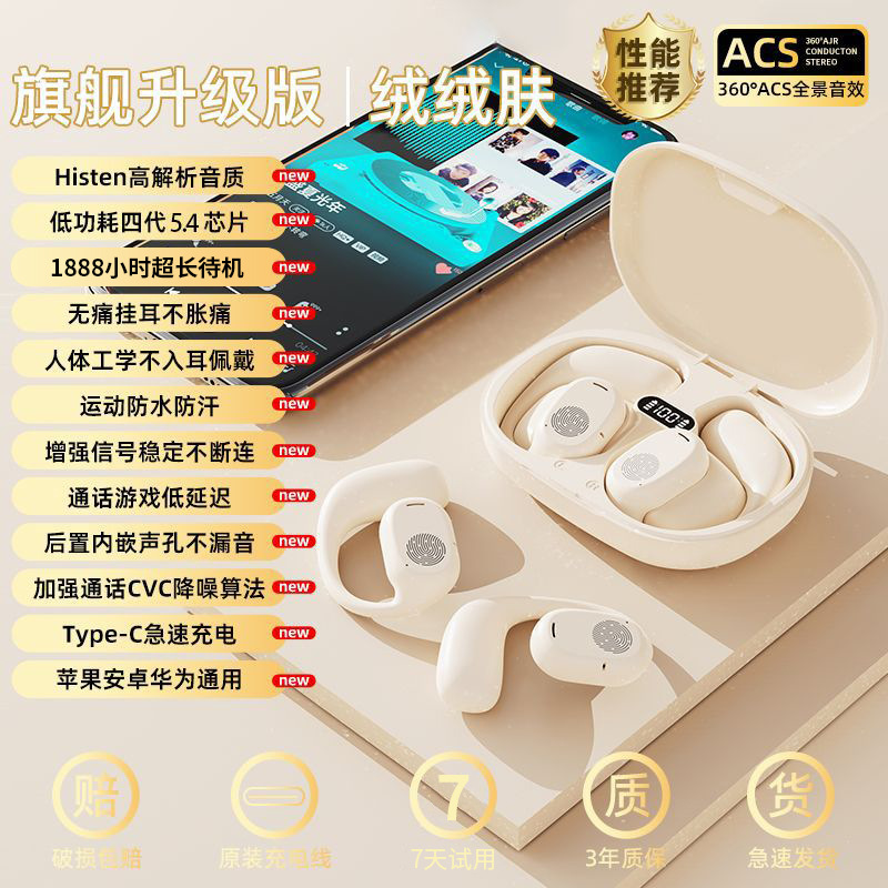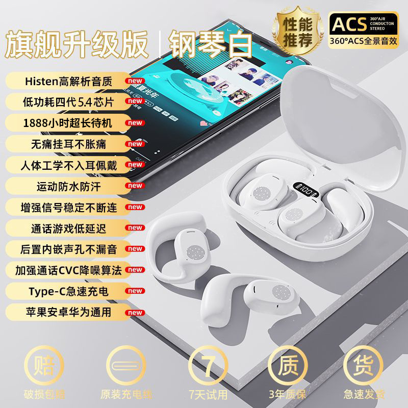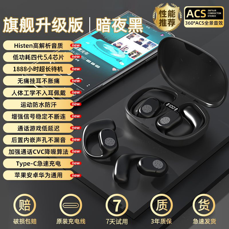 爆款单耳不入耳无线OWS蓝牙耳机超长续航空气骨传导挂耳式运动立