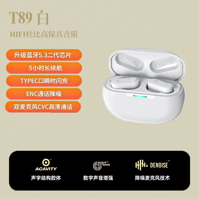 短柄新款T89无线蓝牙耳机5.3超长续航高音质无线耳机